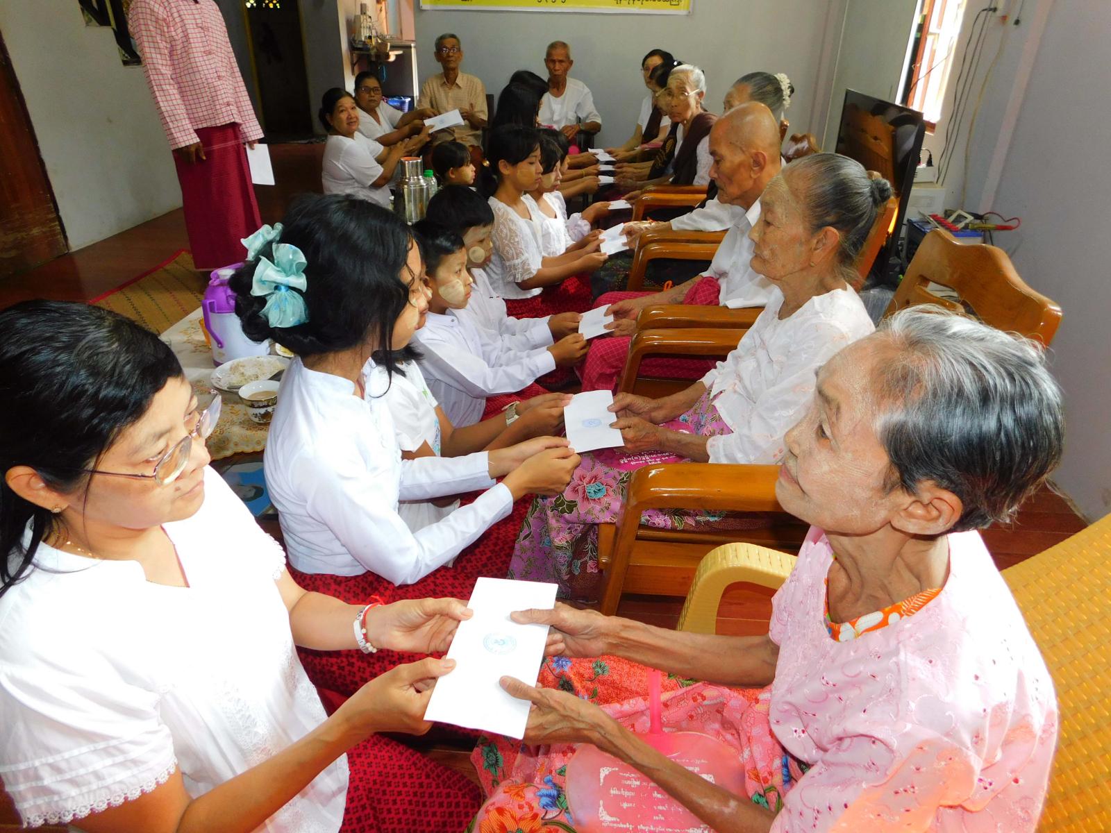 ဦးစွာ အသက် (၈၀) နှစ်အထက် မွန်တိုင်းရင်းသားသက်ကြီးဘိုးဘွားများအား သြကာသကန်တော့ချိုး ဖြင့်ကန်တော့ခဲ့ကြပြီး သက်ကြီးဘိုးဘွားများကိုယ်စား နိုင်ဖိုးအောင်က မွန်တိုင်းရင်းသား ကလေးငယ်များကို ဆုံးမသြဝါဒစကားများ ပြောကြားခဲ့သည်။