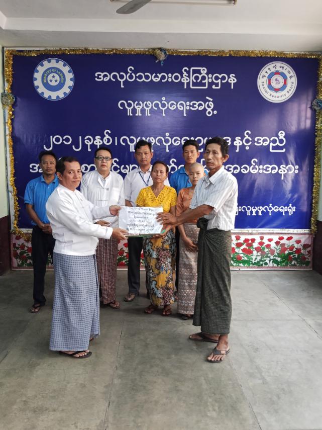 ထို့နောက် ဒုတိယညွှန်ကြားရေးမှူးက ဒဂုံမြို့သစ် (တောင်ပိုင်း) မြို့နယ်၊ လူမှုဖူလုံရေးရုံးတွင် အကျုံးဝင်မှတ်ပုံတင်ထားသော No. 70/71 Water Pipe Warehouse (Popular) စက်ရုံမှ အာမခံအလုပ်သမား ဦးအောင်သူရ၏ လုပ်ငန်းခွင်မှအပြန်လမ်းခရီး၌ မတော်တဆ ထိခိုက်ခဲ့မှုကြောင့် သေဆုံးခြင်းအတွက် ကျန်ရစ်သူ ငွေလုံးငွေရင်းအကျိုးခံစားခွင့် ငွေကျပ် ၁၄,၈၁၂,၅၀၀ (ကျပ်တစ်ရာလေးဆယ့်ရှစ်သိန်းတစ်သောင်းနှစ်ထောင်ငါးရာတိတိ/-) ကို သေဆုံးသူ၏ဖခင်ဖြစ်သူ ဦးဘလှိုင်ထံသို့ ရုံးခွဲတာဝန်ခံ၊ နယ်မြေတာဝန်ခံ၊ အလုပ်ဌာနတာဝန်ရှိသူများနှင့် WCC အဖွဲ့ဝင်များရှေ့တွင် လက်ဝယ်ပေးအပ်ကြောင်း သိရသည်။