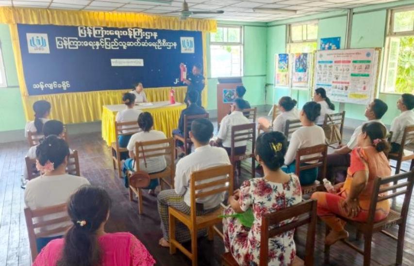 ထို့နောက် မြို့နယ်မီးသတ်ဦးစီးဌာနမှ လက်ထောက်မီးသတ်ဦးစီးမှူး ဦးပြည့်စုံထွန်းက မီးဘေးအန္တရာယ်ကြိုတင်ကာကွယ်ရေးနှင့်ပတ်သက်၍ မီးလောင်မှုဖြစ်ပွားရခြင်း၏ အဓိကအချက်(၃)ချက်ရှိပါကြောင်း၊ မီးသတ်ဆေးဗူး(၅)မျိုးရှိပါကြောင်းနှင့် ဌာနဆိုင်ရာရုံးများ မီးဘေးကြိုတင်ကာကွယ်ရေး၊ မီးသတ်ဆေးဘူးထားရှိမှု၊ မီးချိပ်၊ မီးကပ်၊ ရေ၊ သဲ အဆင်သင့်ထားရှိရေးတို့ကို အသိပညာပေးဟောပြောဆွေးနွေးပြီး မီးသတ်ဆေးဘူး အသုံးပြုပုံများအား လက်တွေ့ရှင်းလင်း သရုပ်ပြသခဲ့ကြောင်း သိရသည်။