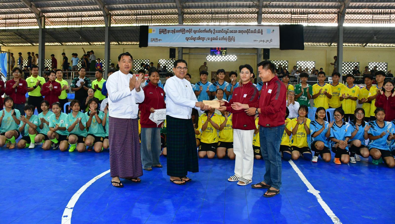 ထို့အတူ ပြည်နယ်ဝန်ကြီးချုပ်နှင့် အဖွဲ့ဝင်များသည် ယနေ့နံနက်ပိုင်းကလည်း မြစ်ကြီးနားမြို့ ငြိမ်းချမ်းသာယာဖူဆယ်အားကစားရုံ၌ ကက်သလစ်အသင်းတော် မြစ်ကြီးနားဘုန်းတော်ကြီးတပိုင် လူငယ်ကော်မတီများက ကြီးမှူးကျင်းပသော မြစ်ကြီးနားဘုန်းတော်ကြီးတပိုင်အတွင်းရှိ လူငယ်များ ၏ ကျား/မ ဖူဆယ်ပြိုင်ပွဲ ဗိုလ်လုပွဲအဆင့်ပွဲတွင် တတိယအဆင့်ပြိုင်ပွဲအဖြစ် မြို့တွင်းနှင့် ကချင်စု အမျိုးသားဖူဆယ်အသင်းတို့၏ ယှဉ်ပြိုင်မှုကို ကြည့်ရှုအားပေးခဲ့ကြပြီး ပြည်နယ်ဝန်ကြီးချုပ်က ဘောလုံးပြိုင်ပွဲအတွက် ချီးမြှင့်ငွေများကို ထောက်ပံ့ပေးအပ်ခဲ့ကြောင်း သိရသည်။