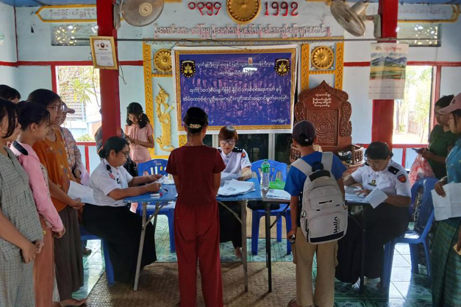 မကွေးတိုင်းဒေသကြီး၊ သရက်မြို့၌ မြို့နယ်လူဝင်မှုကြီးကြပ်ရေးနှင့် ပြည်သူ့အင်အားဝန်ကြီးဌာန မြို့နယ်ဦးစီးမှူး ဦးစိုးနိုင်ဝင်းနှင့် ဝန်ထမ်းများက ယမန်နေ့ နံနက်ပိုင်းက အမှတ်(၃)ရပ်ကွက်နှင့် အမှတ်(၄)ရပ်ကွက်တို့တွင် အသက်(၁၀)နှစ်မှ (၁၈)နှစ်ကြား၊ အသက်(၁၈)နှစ်အထက် နိုင်ငံသားစိစစ်ရေးကတ်မရှိသူများ၊ အိမ်ထောင်စုလူဦးရေစာရင်း ပုံစံ ၆၆/၆ မရှိသူများအား ရက်(၁၀၀)စီမံချက်ဖြင့် နိုင်ငံသားစိစစ်ရေးကတ်နှင့် အိမ်ထောင်စုများအား အမှတ်(၃)ရပ်ကွက်နှင့် အမှတ်(၄)ရပ်ကွက်တို့တွင် ကွင်းဆင်းဆောင်ရွက်ပေးလျက်ရှိကြောင်း သိရသည်။