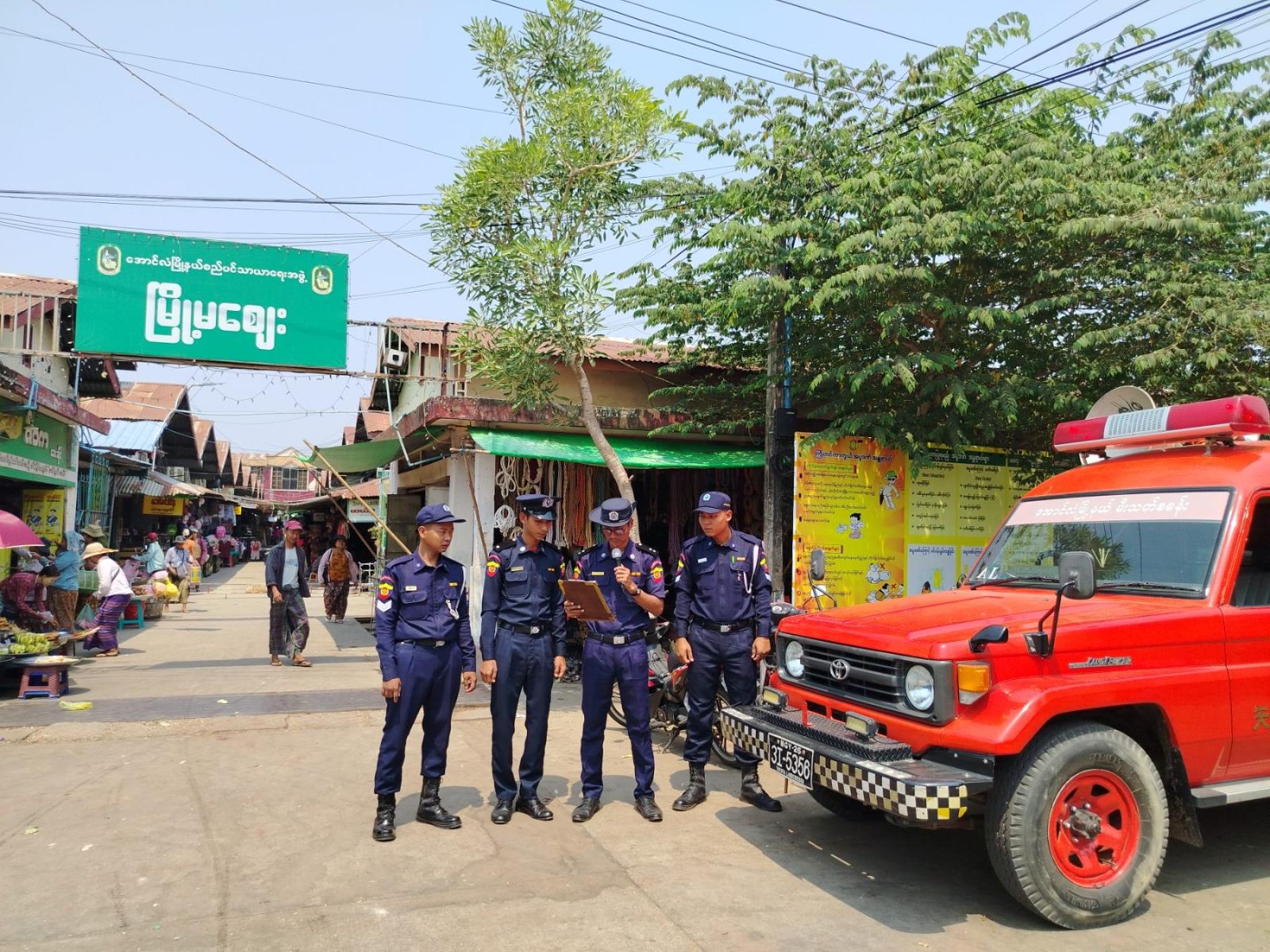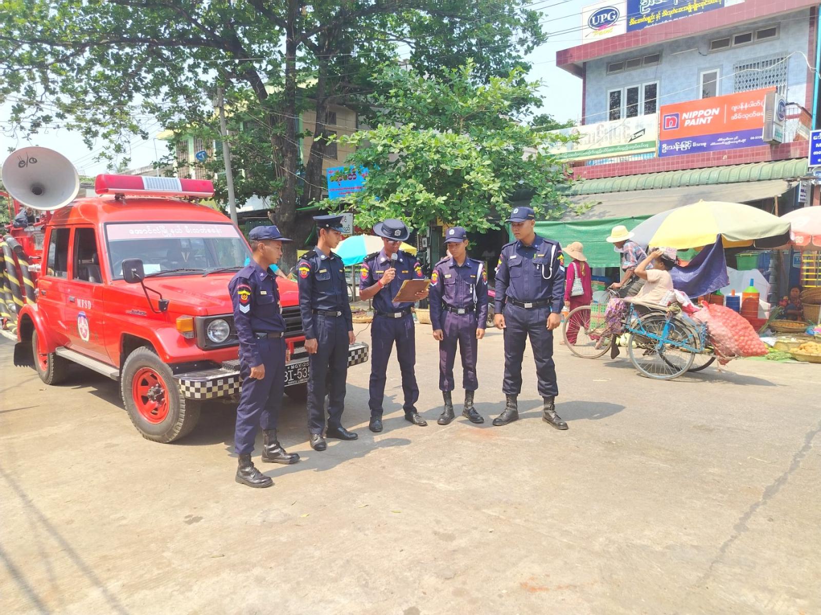 ထိုသို့ ဆောင်ရွက်ရာတွင် မြို့နယ်မီးသတ်ဦးစီးဌာနနှင့် တာဝန်ရှိသူများ ပူးပေါင်းအဖွဲ့သည် မြို့ပေါ်လူစည်ကားရာနေရာများနှင့် လမ်းဆုံလမ်းခွများ၌ မော်တော်ယာဉ်ဖြင့် လှည့်လည်ကာ အပူလှိုင်းနှင့်ပတ်သက်သည့် သတိပေးချက်များ၊ လိုက်နာရမည့်အချက်များကို အသံချဲ့စက်ဖြင့် တိုက်တွန်းနှိုးဆော်ရာတွင် နေ့လယ် (၁၁) နာရီမှ ညနေ (၄) နာရီအတွင်း နေရောင်ခြည်အောက်သို့ တိုက်ရိုက်ထွက်ခွာခြင်းမှ ရှောင်ကြဉ်ရန်၊ ခန္ဓာကိုယ်အတွင်း ရေဓာတ်မခမ်းခြောက်စေရန် ရေနှင့် ဓာတ်ဆားရည်များကို ခပ်စိပ်စိပ်သောက်သုံးရန်၊ အပြင်ထွက်ပါက ထီး၊ ဦးထုပ်များ ဆောင်းသွားရန်နှင့် အပူဒဏ်ခံနိုင်သော အဝတ်အထည်များ ဝတ်ဆင်ရန်၊ အပူဒဏ်ကြောင့် မူးဝေခြင်း၊ ပျို့အန်ခြင်းနှင့် ကြွက်တက်ခြင်းများ ဖြစ်ပေါ်ပါက နီးစပ်ရာ ကျန်းမာရေးဌာနသို့ အမြန်ဆုံးပြသရန် စသည်တို့ကို တိုက်တွန်းနှိုးဆော်သည်။