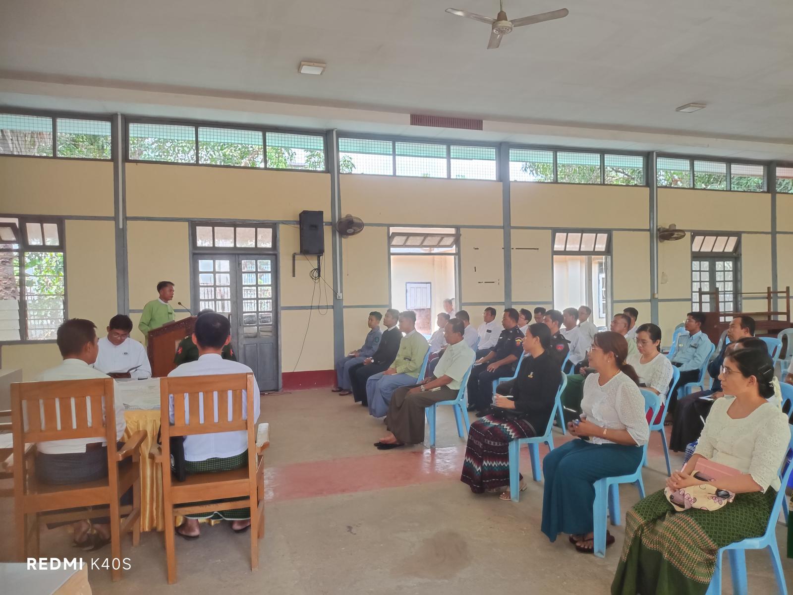 ယင်းနောက် အထွေထွေအုပ်ချုပ်ရေးဦးစီးဌာန ဝန်ထမ်းများ၊ အုပ်ချုပ်ရေးမှူးများနှင့် တွေ့ဆုံကာ မိတ်ဆက်စကားပြောကြားခဲ့ကြပြီး မြို့နယ်စီမံခန့်ခွဲရေးနှင့် အုပ်ချုပ်ရေးကော်မတီဥက္ကဋ္ဌက နိဂုံးချုပ်စကားပြောကြားခဲ့သည်။
