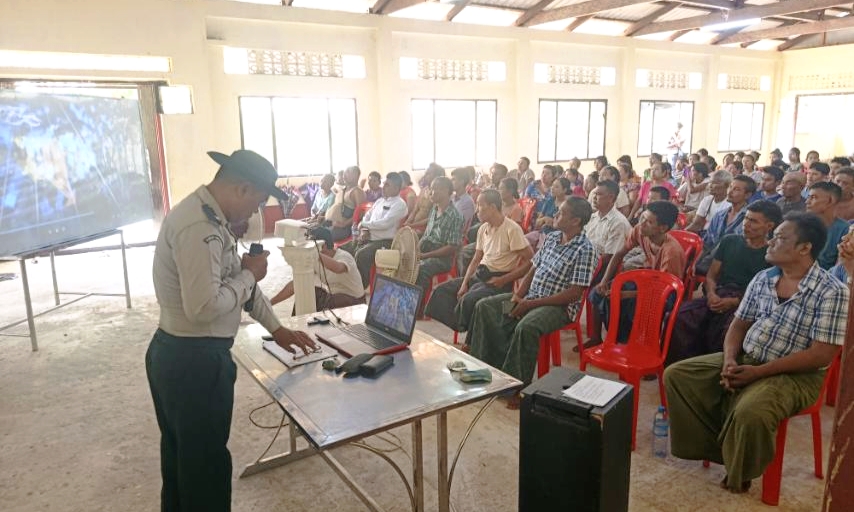 ဟောပြောပွဲတွင် မြို့နယ်သစ်တောဦးစီးဌာန၊ ဘိနယ်တာဝန်ခံ တောအုပ် ဦးတင်လှိုင်က သစ်တောထိန်းသိမ်းရေး၊ တောမီးကာကွယ်ရေးနှင့် မီးခိုးမြူငွေ့ညစ်ညမ်းမှုလျှော့ချရေးဆိုင်ရာ များကို ကျေးရွာသူကျေးရွာသားများအား အသိပညာပေးဟောပြောသည်။