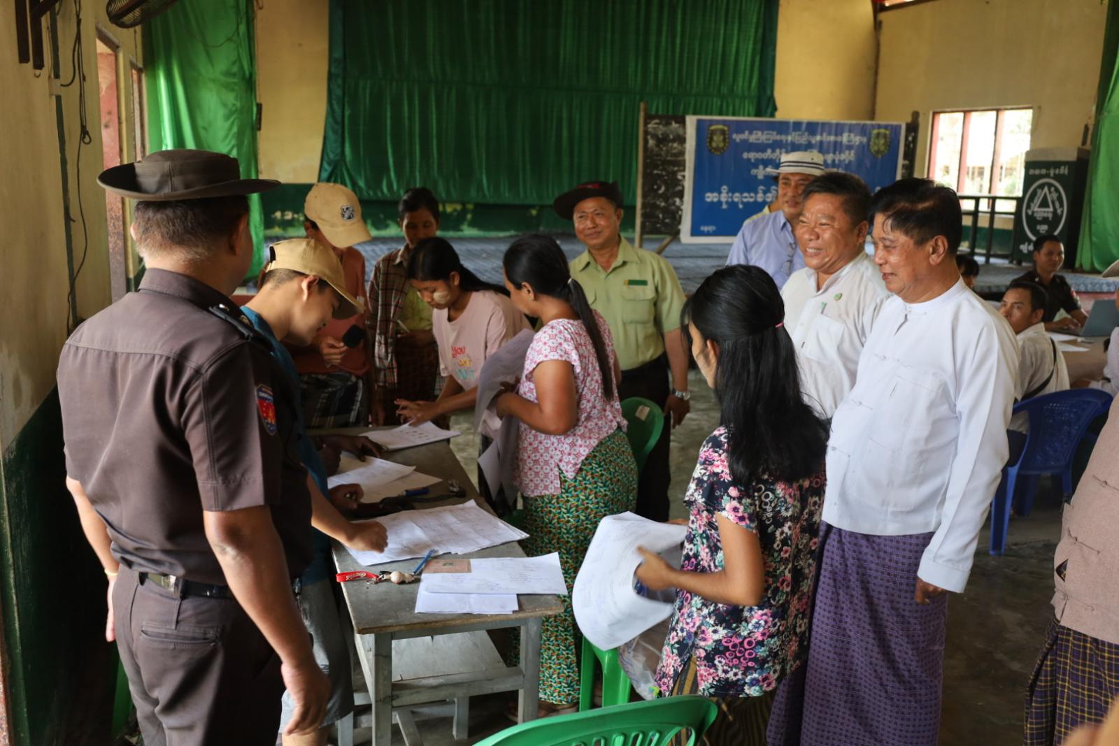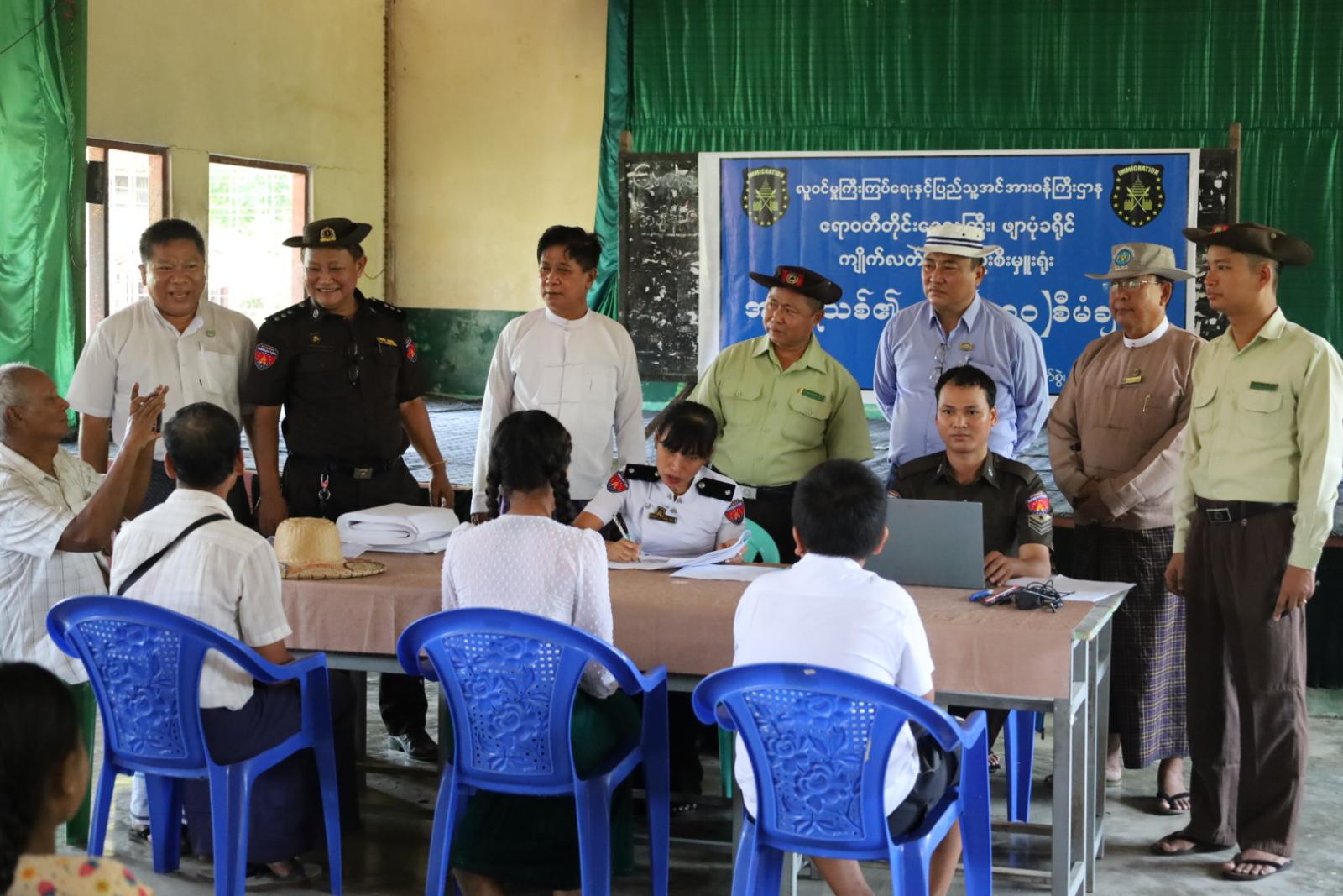 ဧရာဝတီတိုင်းဒေသကြီး၊ ဖျာပုံခရိုင်၊ ကျိုက်လတ်မြို့နယ်တွင် အစိုးရသစ်၏ ရက်(၁၀၀)စီမံချက်ဖြင့် အိမ်ထောင်စုလူဦးရေစာရင်းနှင့် နိုင်ငံသားစိစစ်ရေးကတ်ပြားများ ပြုလုပ်ပေးခြင်းကို ယနေ့နေ့လယ်ပိုင်းက ရုံးဒေါင့်ကျေးရွာ၊ အခြေခံပညာအထက်တန်းကျောင်း၌ ကွင်းဆင်းဆောင်ရွက်ပေးခဲ့သည်။