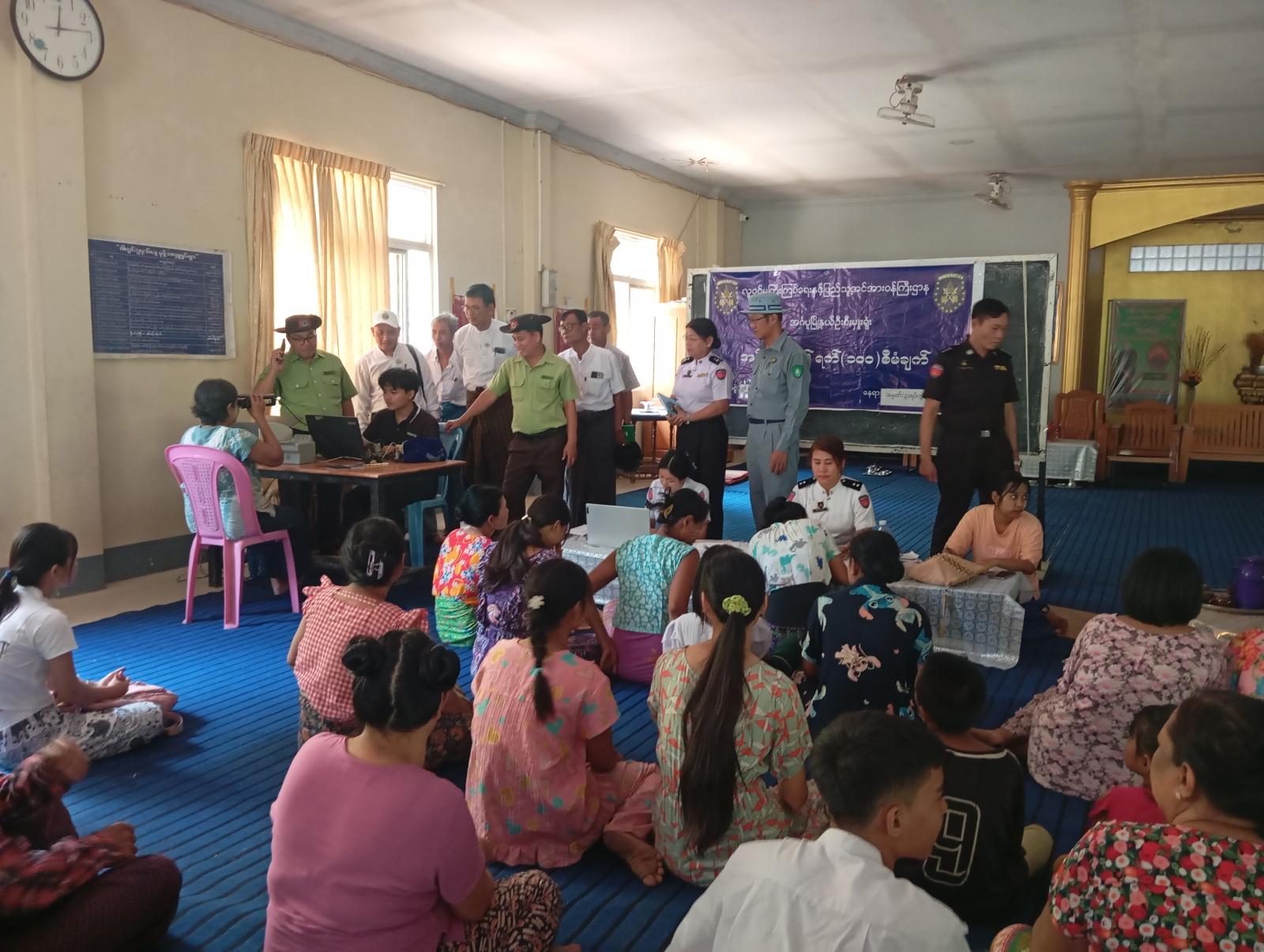 ဧရာဝတီတိုင်းဒေသကြီး၊ မြန်အောင်ခရိုင်၊ အင်္ဂပူမြို့နယ်တွင်အစိုးရသစ်၏ ရက်(၁၀၀) စီမံချက်ဖြင့် နိုင်ငံသားစိစစ်ရေးကတ်ပြား ပြုလုပ်ပေးခြင်းကို ယနေ့နံနက်(၉)နာရီအချိန်က အမှတ်(၃)ရပ်ကွက်၊ ဖားအောက်တောရကျောင်းဓမ္မာရုံတွင် ကွင်းဆင်းဆောင်ရွက်ပေးခဲ့သည်။