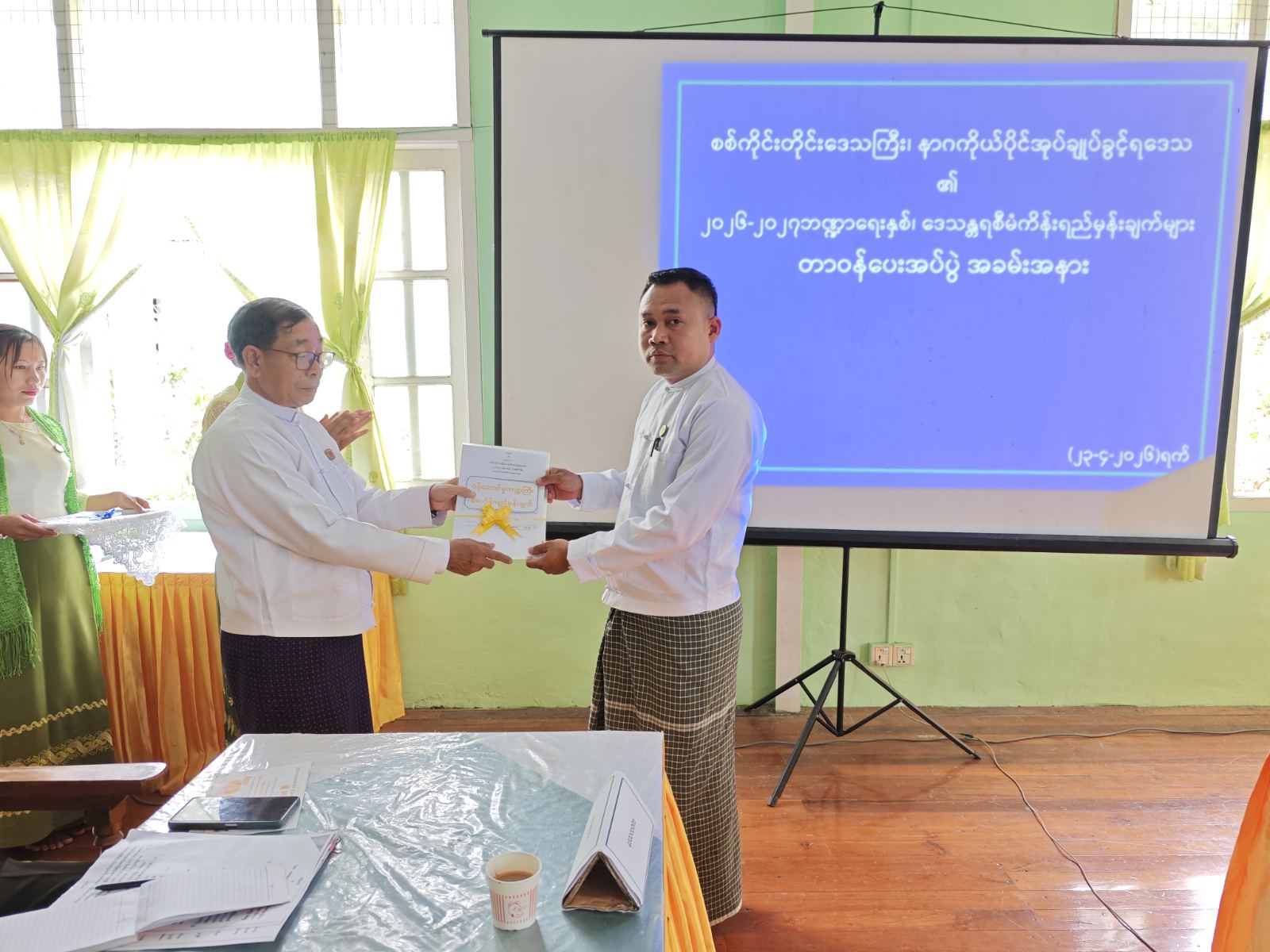 စစ်ကိုင်းတိုင်းဒေသကြီး နာဂကိုယ်ပိုင်အုပ်ချုပ်ခွင့်ရဒေသ လဟယ်မြို့တွင် (၂၀၂၆-၂၀၂၇) ဘဏ္ဍာနှစ် အကောင်အထည်ဖော်ဆောင်ရွက်မည့် ဒေသန္တရစီမံကိန်းရည်မှန်းချက် တာ၀န်ပးအပ်ပွဲ အခမ်းအနားကိုယနေ့(၁၄:၀၀)နာရီအချိန် လဟယ်မြို့နာဂဒေသဦးစီးအဖွဲ့ အစည်းအဝးခန်းမ၌ ကျင်းပပါသည်။