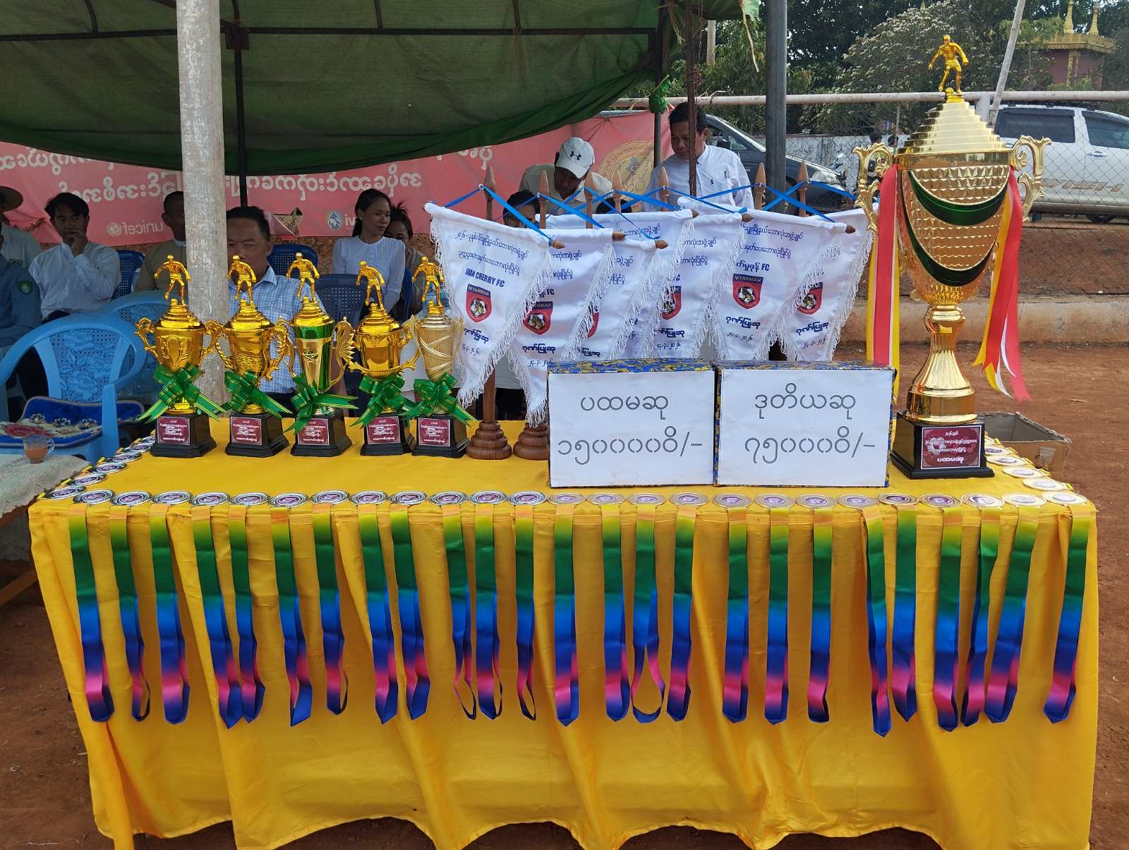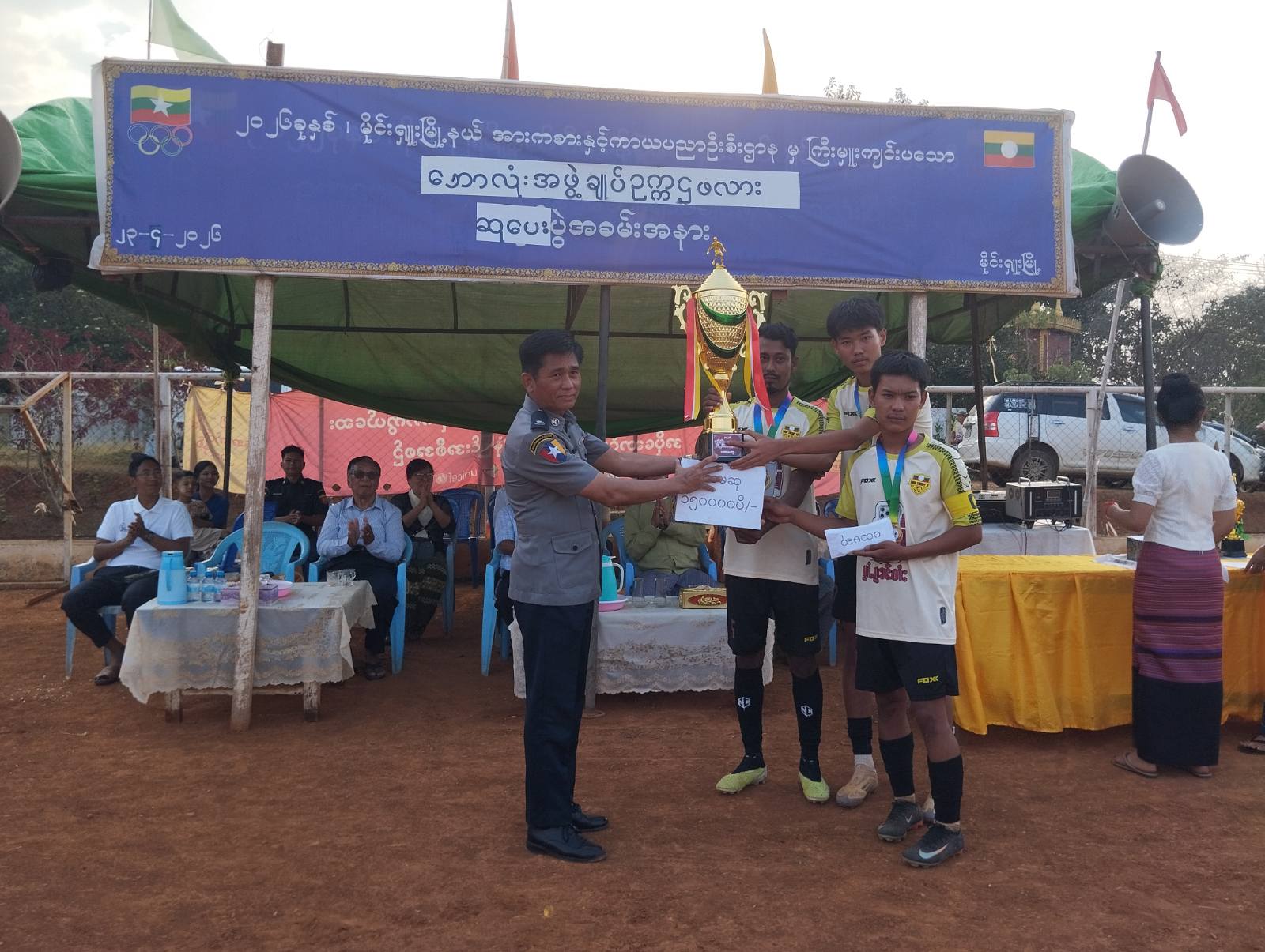 ထို့နောက် ဆုချီးမြှင့်ပွဲအစီအစဉ်ကို ဆက်လက်ကျင်းပရာ 90 FC အသင်းက ဒုတိယဆုရရှိပြီး တစ်ဦးချင်းငွေဆွဲပြားဆုနှင့် ငွေသားဆု၊ ရှမ်းချယ်ရီ FC အသင်းက ပထမဆုရရှိပြီး တစ်ဦးချင်းရွှေဆွဲပြားဆု၊ နောက်တန်း၊ အရှေ့တန်း၊ အလယ်တန်း၊ ပွဲစဉ်တစ်လျှောက်အကောင်းဆုံး ဘောလုံးသမားဆု၊ အကောင်းဆုံးဂိုးသမားဆု၊ ပထမဆုတံခွန်စိုက်ဆုဖလားနှင့် ငွေသားဆုတို့ကို တာဝန်ရှိသူများက အသီးသီးပေးအပ်ချီးမြှင့်ခဲ့ကြသည်။