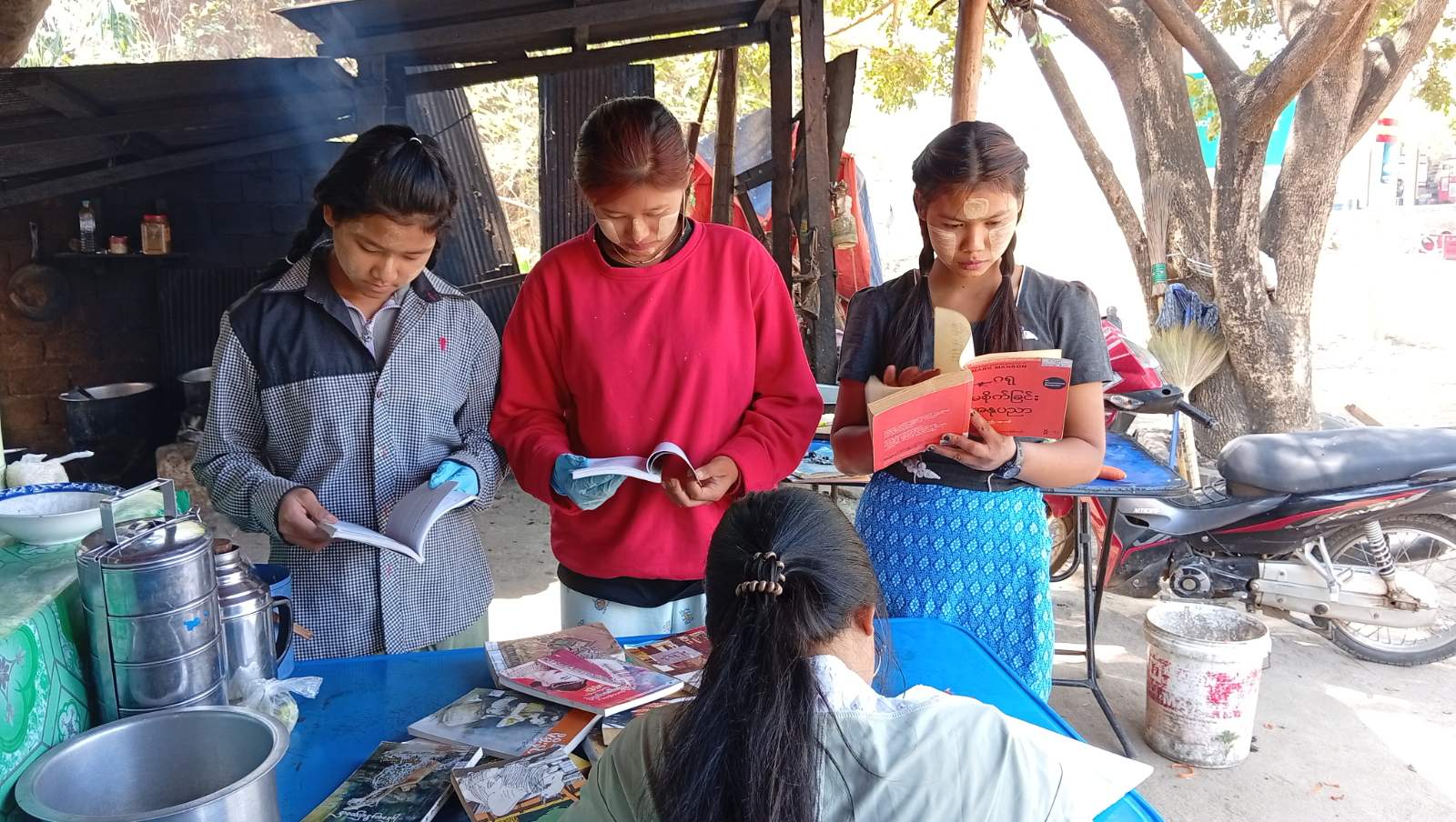 ရှမ်းပြည်နယ်(အရှေ့ပိုင်း)၊ ကျိုင်းတုံခရိုင်၊ မိုင်းခတ်မြို့နယ်ပြန်ကြားရေးနှင့်ပြည်သူ့ဆက်ဆံရေးဦးစီးဌာနမှ Mobile Library စနစ်ဖြင့် စာအုပ်စာစောင်များ အခမဲ့ငှားရမ်းပေးခြင်းနှင့် စာအုပ်များ အသစ်လဲလှယ်ပေးခြင်းကို အပတ်စဉ်ကွင်းဆင်းဆောင်ရွက်လျက်ရှိရာ ယနေ့နံနက် (၁၀) နာရီအချိန်က မိုင်းခတ်မြို့၊ အမှတ် (၁) ရပ်ကွက်ရှိ စာဖတ်ပရိသတ်များထံ စာအုပ်များ ငှားရမ်းဆောင်ရွက်ခဲ့ကြောင်း သိရသည်။