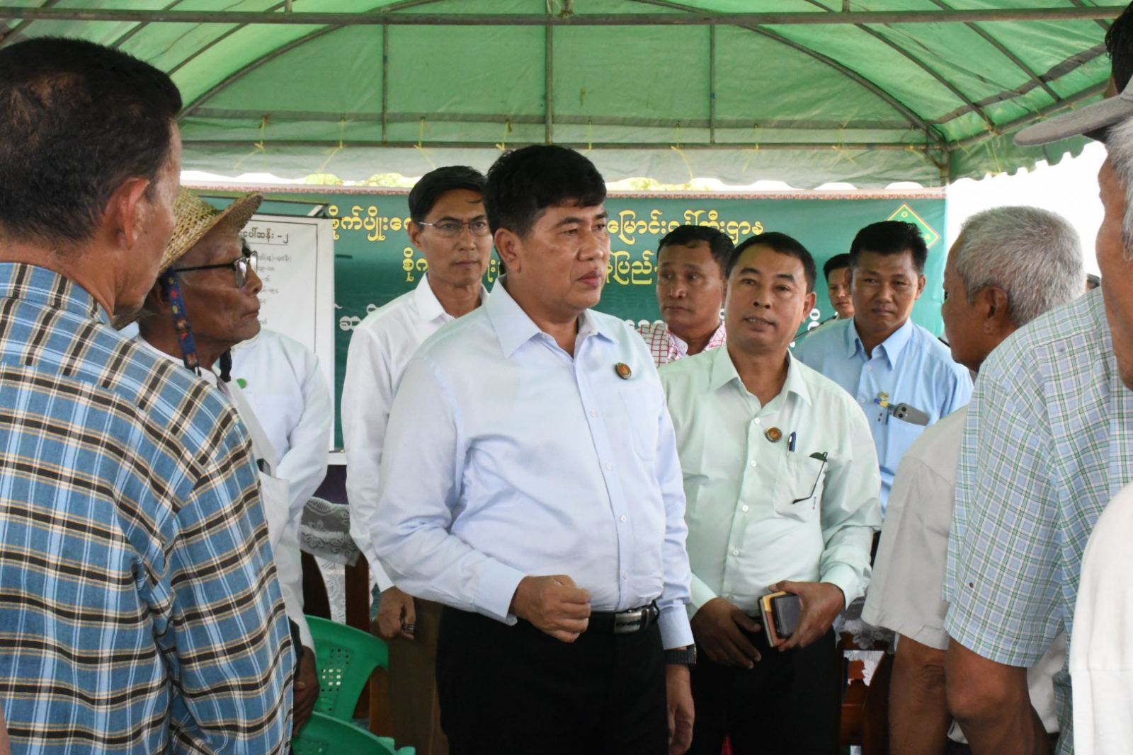 ထို့နောက် စီမံကိန်း၊ စီးပွားရေးနှင့်ဘဏ္ဍာရေးဝန်ကြီးက လိုအပ်သည်များကို ဖြည့်စွက်ဆွေးနွေးခဲ့ပြီး ပြည်နယ်ဝန်ကြီးချုပ်က တောင်သူများနှင့် တွေ့ဆုံကာ တောင်သူများ၏ လိုအပ်ချက်များ၊ ဒေသဖွံ့ဖြိုးရေးလုပ်ငန်းအတွက် ဒေသခံများက ကျေးရွာတွင် လိုအပ်နေသည့် ကုန်ထုတ်လမ်းများ ဖောက်လုပ်ပေးနိုင်ရန်တင်ပြမှုအပေါ် ပေါင်းစပ်ညှိနှိုင်းဆောင်ရွက်ပေး၍ ရေဆင်းပေါ်ဆန်း (၁)၊ (၂) စပါးမျိုးများစမ်းသပ် စိုက်ပျိုးအောင်မြင်ဖြစ်ထွန်းနေမှုခြေအနေများအား ကွင်းဆင်း ကြည့်ရှုအားပေးခဲ့သည်။