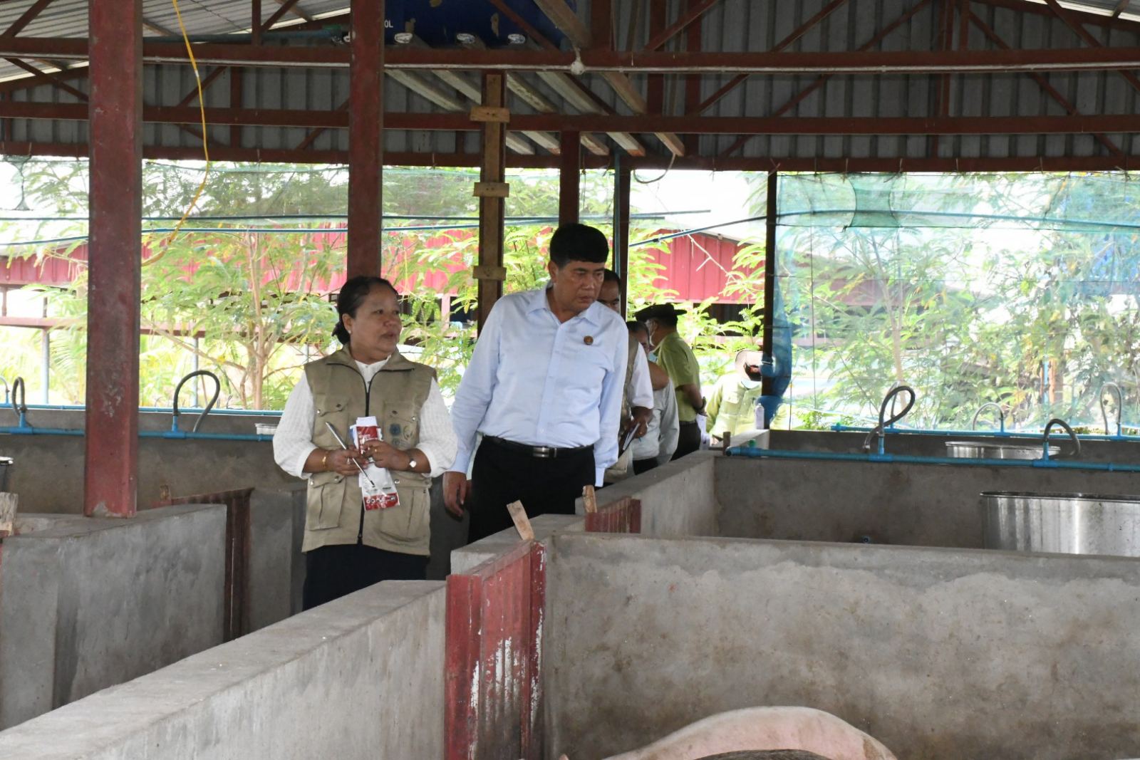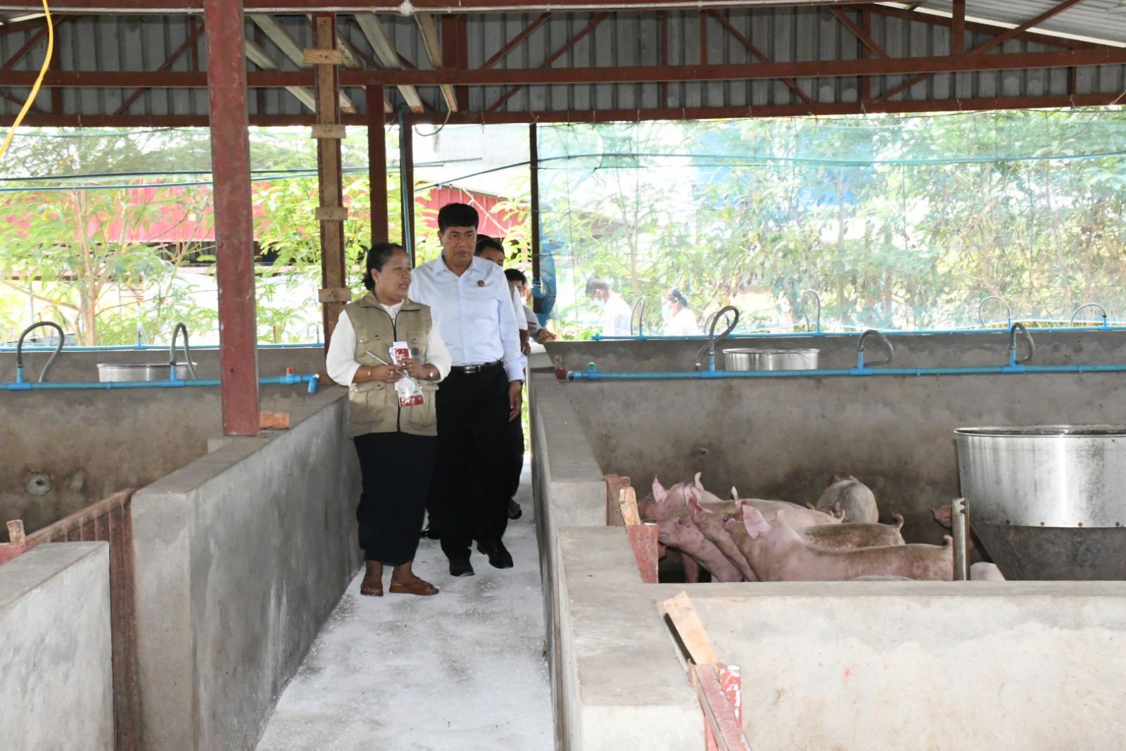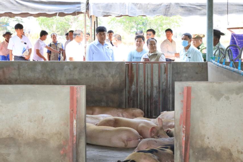 ထို့နောက် ပြည်နယ်ဝန်ကြီးချုပ်နှင့် တာဝန်ရှိသူများသည် အသားတိုးနှင့် မျိုးဝက်မွေးမြူရေးခြံများအတွင်း လှည့်လည်ကြည့်ရှုပြီး ပြည်နယ်ဝန်ကြီးချုပ်က မျိုးကောင်းမျိုးသန့်များကို ဒေသအတွင်း အခြားတစ်ပိုင်တစ်နိုင် မွေးမြူသူများအား မွေးမြူနိုင်ရေးအတွက် ကြိုးစားထုတ်လုပ်သွားကြရန်၊ မွေးမြူရေးလုပ်ကိုင်သူများအား မျိုးကောင်မျိုးသန့်ဝက်များ ဖြန့်ဖြူးနိုင်ရေးဝက်သားပေါက်များကို စဉ်ဆက်မပြတ် မွေးမြူထားရန်နှင့် အနံ့အသက်ဆိုးများ မထွက်ရှိစေရေးနှင့် ကူးစက်ရောဂါများ ကျရောက်မှုမရှိစေရေးတို့ကို အလေးထားဆောင်ရွက်ရန် တာဝန်ရှိသူများအား မှာကြားခဲ့ကြောင်း သိရသည်။