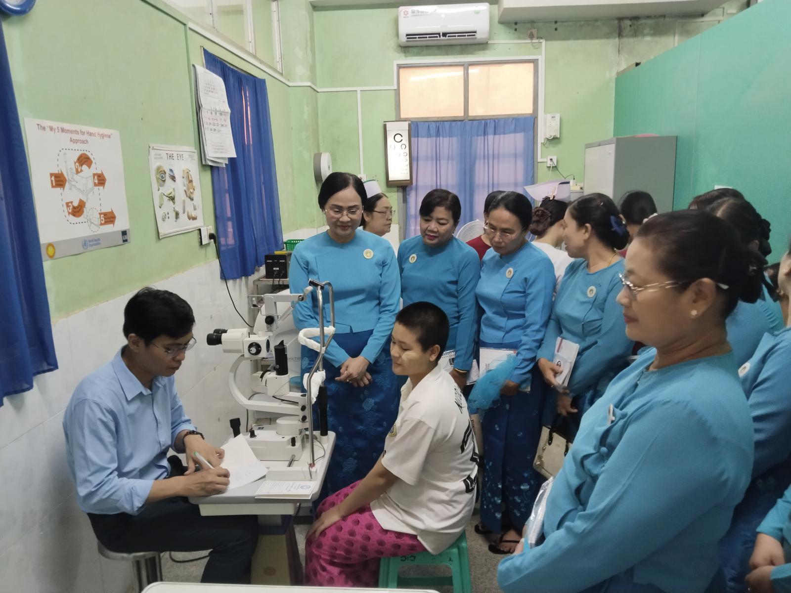 ထိုသို့ မျက်စိစမ်းသပ်ကုသပေးရာတွင် ဘားအံပြည်သူ့ဆေးရုံကြီးမှ မျက်စိအထူးကုဆရာဝန် ဒေါက်တာ တင်ဇော်မြတ်နှင့် ကျန်းမာရေးဝန်ထမ်းများက မျက်စိရောဂါဝေဒနာရှင် များအား အခမဲ့စမ်းသပ်ကုသပေးပြီး မျက်မှန်များ ပြုလုပ်ပေးခဲ့ရာ ပြည်နယ်အမျိုးသမီးရေးရာအဖွဲ့နှင့် မိခင်နှင့်ကလေးစောင့်ရှောက်မှု ကြီးကြပ်ရေးအဖွဲ့နာယကနှင့် တာဝန်ရှိသူများက လှည့်လည်ကြည့်ရှုအားပေးခဲ့ပြီး မျက်စိဝေဒနာရှင်များအား အအေးနှင့်မုန့်အာဟာရများ ပေးအပ်ခဲ့ကြောင်း သိရသည်။