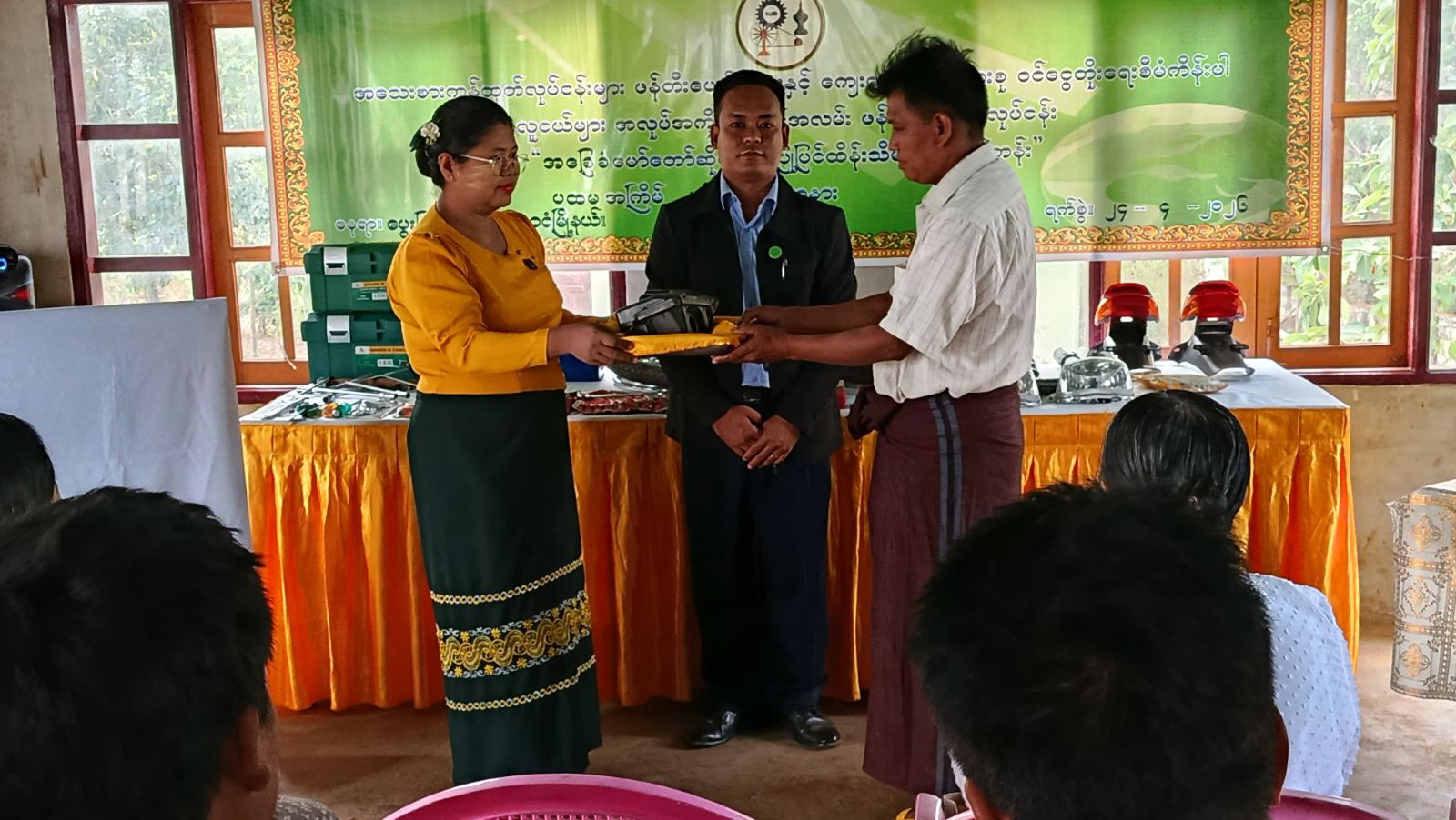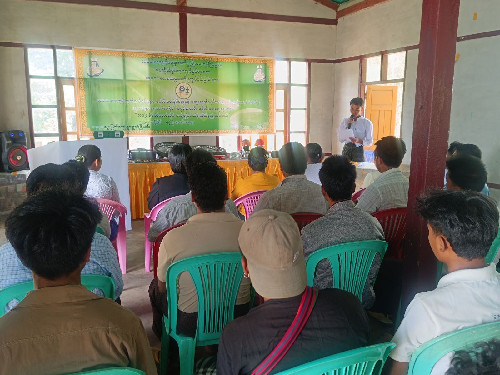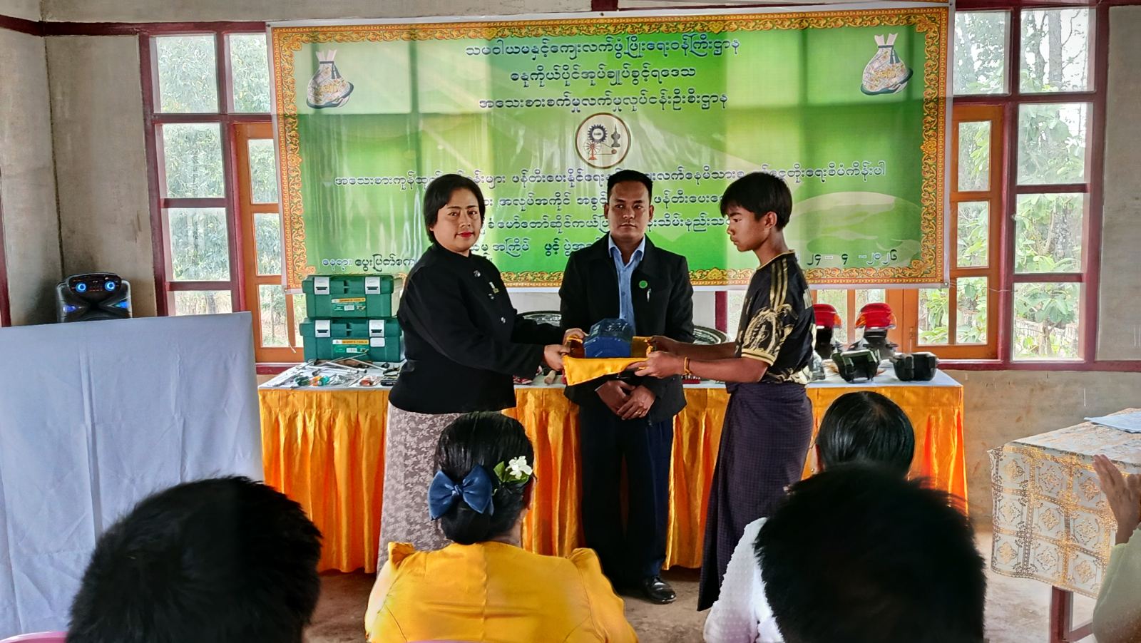 သင်တန်းဖွင့်ပွဲတွင် ဒေသအသေးစား စက်မှုလက်မှုလုပ်ငန်းဦးစီးဌာနမှ ဒေသဦးစီးမှူး ဒေါ်အေးအေးသန့်က သင်တန်းဖွင့်လှစ်ရခြင်း၏ ရည်ရွယ်ချက်များကို ရှင်းလင်းပြောကြားခဲ့ပြီး ဒေသအဆင့် စီမံကိန်းအဖွဲ့ဝင်များက သင်တန်းအတွက် သင်တန်းသုံးကုန်ကြမ်းပစ္စည်းများကို ပေးအပ်ခဲ့ကြောင်းနှင့် သင်တန်းသား (၁၉) ဦး တက်ရောက်သင်ကြားမည်ဖြစ်ပြီး သင်တန်းကာလမှာတစ်လကြာ သင်ကြားပို့ချ ပေးသွားမည်ဖြစ်ကြောင်း သိရသည်။