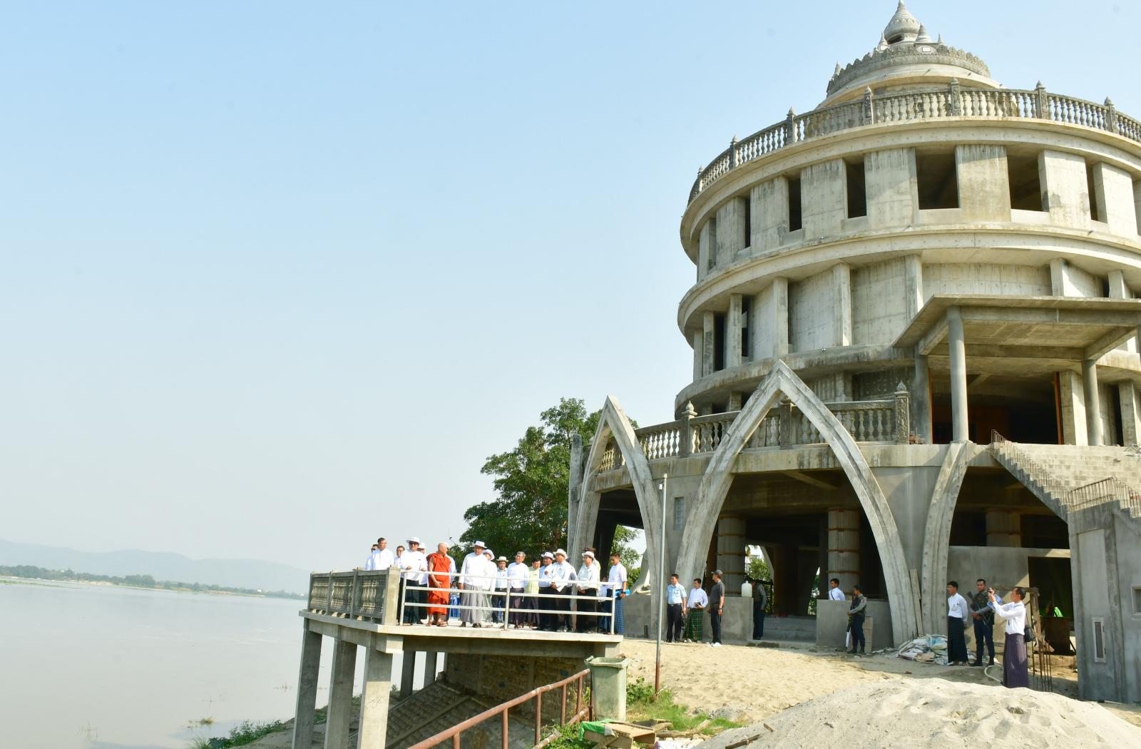 ယင်းနောက် ပြည်နယ်ဝန်ကြီးချုပ်သည် ပြည်နယ်ဝန်ကြီးများ၊ ပြည်နယ်အဆင့်ဌာနဆိုင်ရာ တာဝန်ရှိသူများနှင့်အတူ မြစ်ကြီးနားမြို့ ရှမ်းစုတောင်ရပ်ကွက်အတွင်း ဧရာဝတီမြစ်ကမ်းဘေး၌ ဝန်းသိုဆရာတော်အရှင်သူမြတ်ကြီး၏ လမ်းညွှန်မှုဖြင့် တည်ထားကိုးကွယ်လျက်ရှိသည့် ဓာတ်တော်တိုက်စေတီတော်ဝင်းအတွင်း ရေအရင်းအမြစ်နှင့် မြစ်ချောင်းများ ဖွံ့ဖြိုးတိုးတက်ရေးဦးစီးဌာနက တာဝန်ယူတည်ဆောက်လျက်ရှိသော ဧရာဝတီမြစ်ရေကြီးမြင့်မှု ကာကွယ်ရေးလုပ်ငန်းအစီအမံများအတွင်း တစ်ခုအပါအဝင်ဖြစ်သည့် ၂၀၂၅-၂၀၂၆ ဘဏ္ဍာရေးနှစ် ပြည်ထောင်စုငွေလုံးငွေရင်းရန်ပုံငွေဖြင့် တည်ဆောက်လျက်ရှိသော အလျား ၁၄၅ ပေရှိ ကျောက်စီမြေထိန်းတမံတည်ဆောက်ခြင်း လုပ်ငန်းခွင်သို့ သွားရောက်ပြီး လုပ်ငန်းများ ဆောင်ရွက်နေမှုအခြေအနေများကို ကြည့်ရှုစစ်ဆေးခဲ့ကြပြီး လိုအပ်သည်များကို ပေါင်းစပ်ညှိနှိုင်း ဆောင်ရွက်ပေးခဲ့ကြောင်း သိရသည်။