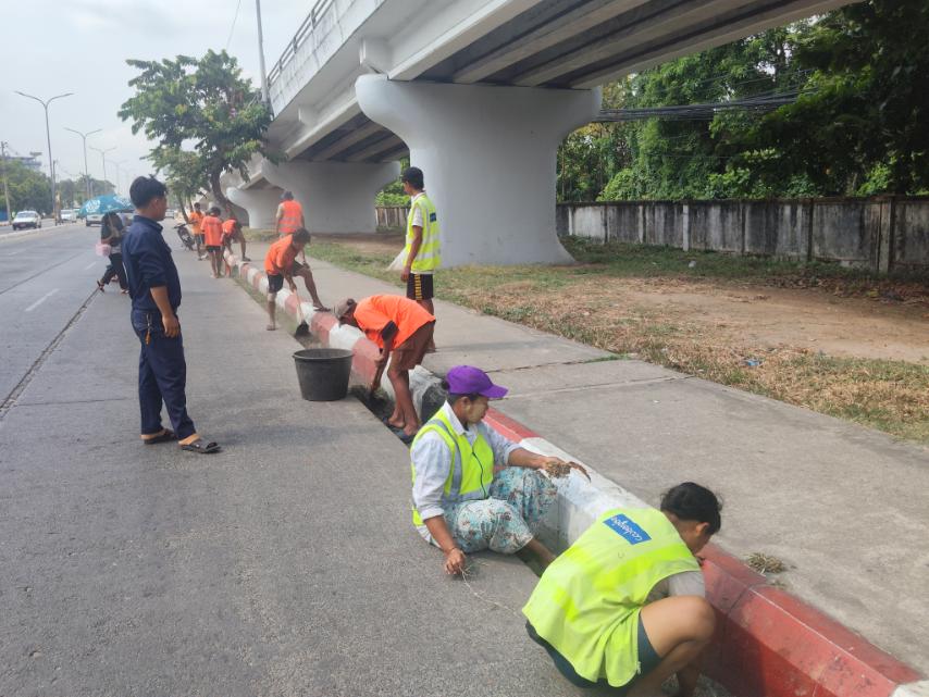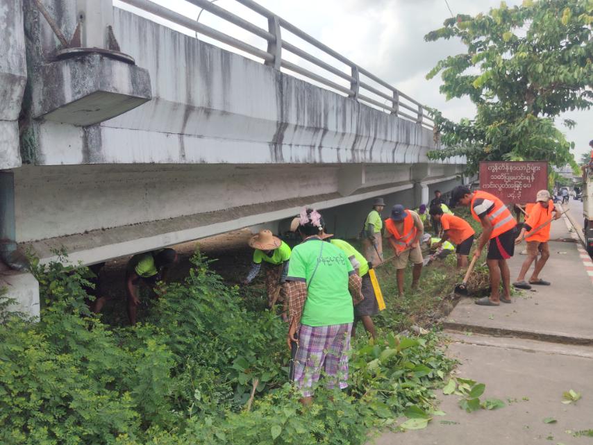 ထိုသို့ ဆောင်ရွက်ရာတွင် မြို့နယ်စီမံခန့်ခွဲရေးနှင့်အုပ်ချုပ်ရေးကော်မတီအဖွဲ့ဥက္ကဋ္ဌနှင့် မြို့နယ်စည်ပင်သာယာအုပ်ချုပ်ရေးမှူးတို့မှကြီးကြပ်၍ မြို့နယ်စည်ပင်သာယာအုပ်ချုပ်ရေးမှုးရုံနှင့် ဌာနများမှ တွဲဖက်ဝန်ထမ်းများ၊ ဌာနဆိုင်ရာဝန်ထမ်းများ၊ ရပ်ကွက်နေပြည်သူများ ပူးပေါင်းအင်အား (၄၅) ဦးဖြင့် သုဓမ္မာလမ်း (ခေမာသီလမ်းမှ ဘုန်းကြီးလမ်းပတ်၀န်းကျင်နှင့်အနီးအနားရှိ အမှိုက်သရိုက်များကောက်ယူခြင်း၊ မြက်ပင်၊ ပေါင်ပင်၊ ချုံနွယ်များအား ခုတ်ထွင်ရှင်းလင်းခြင်း၊ သန့်ရှင်းရေးပြုလုပ်ခြင်း၊ ရေစီးရေလာကောင်းမွန်စေရေး ရေမြောင်းဆယ်ယူရှင်းလင်းခြင်း၊ သစ်ပင်အောက်တက်များရှင်းလင်းခြင်း၊ အုပ်မိုးကိုင်းများ ဖြတ်ညှိ ပုံသွင်း အလင်းဖွင့်ခြင်း၊ သစ်ရွက်ခြောက်ကြွေများ စုပေါင်းသန့်ရှင်းရေးဆောင်ရွက်ခဲ့ကြပြီး ထွက်ရှိအမှိုက်များအား အမှိုက်သိမ်းယာဉ်ဖြင့် စနစ်တကျ စွန့်ပစ်ဆောင်ရွက်ခဲ့ကြကြောင်း သိရသည်။