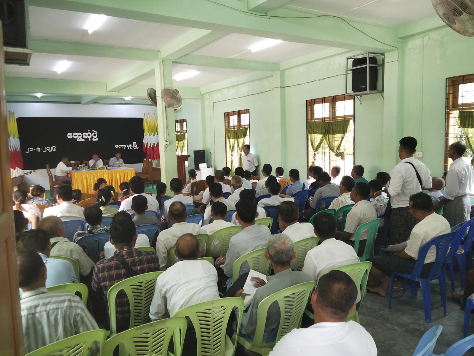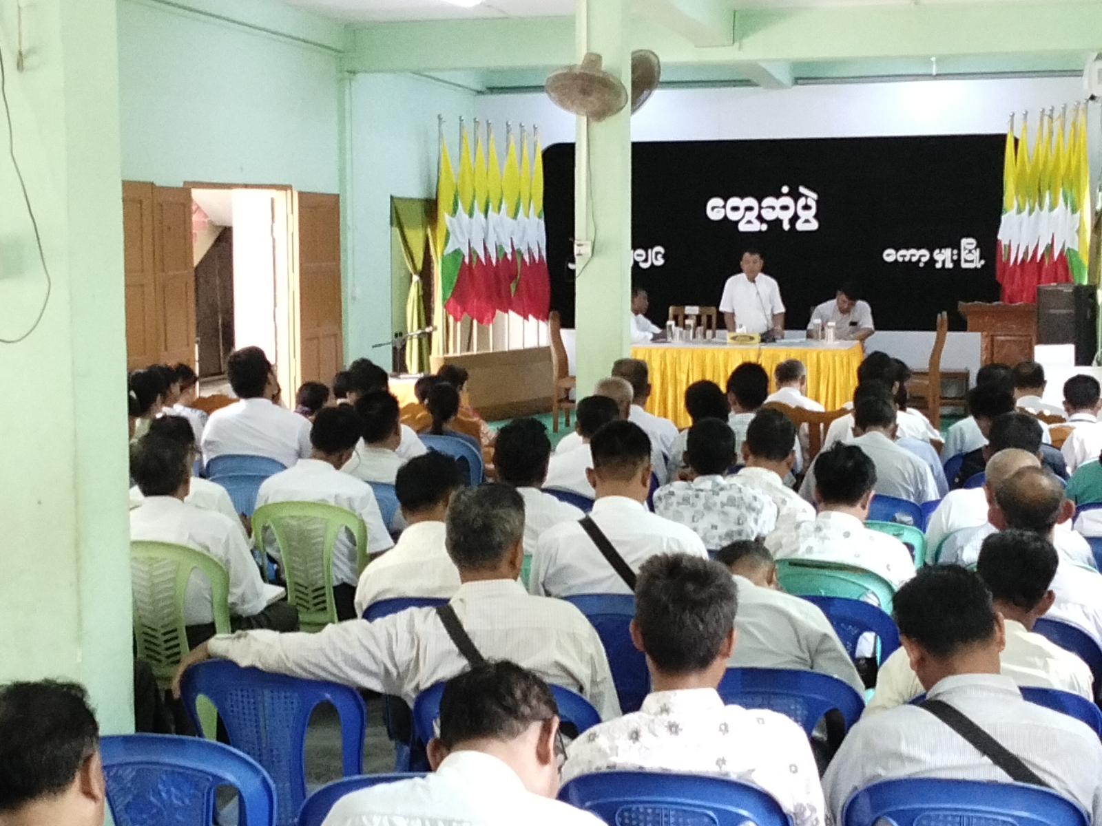 အစည်းအဝေးတွင် မြို့နယ်စီမံခန့်ခွဲရေးနှင့်အုပ်ချုပ်ရေးကော်မတီဥက္ကဋ္ဌ ဦးမျိုးမင်းက ရက် (၁၀၀) စီမံချက် အကောင်အထည်ဖော်ဆောင်ရွက်ရေးကိစ္စရပ်များ၊ ရပ်ကွက်/ ကျေးရွာအုပ်စု အုပ်ချုပ်ရေးမှူးများ လုပ်ငန်းတာဝန်ထမ်းဆောင်ရာတွင် ဥပဒေ/ နည်းဥပဒေ၊ လုပ်ထုံး/ လုပ်နည်းများအား လေ့လာဆောင်ရွက်ရန်၊ ပြည်သူ့စစ်မှုထမ်းကိစ္စရပ်များနှင့်ပတ်သတ်၍ ငွေကြေးပါဝင် ပတ်သတ်မှုမရှိစေရေး အလေးထားဆောင်ရွက်ကြရန်၊ စက်သုံးဆီချွေတာသုံးစွဲရေးနှင့်ပတ်သတ်၍ ပြည်သူလူထုအား အသိပညာပေးဆိုင်ရာကိစ္စရပ်များ၊ တရားမဝင် စက်သုံးဆီရောင်းဝယ်နေမှုများအား ဖော်ထုတ်အရေးယူဆောင်ရွက်နိုင်ရေးကိစ္စရပ်များ၊ မိုးစပါးရာနှုန်းပြည့် စိုက်ပျိုးဆောင်ရွက်နိုင်ရေးကိစ္စရပ်များ၊ Seeder ဖိုးကြွေးကျန်များ အပြေအကြေကောက်ခံပေးသွင်းရန်ကိစ္စရပ်များ၊ လုံခြုံရေးဆိုင်ရာကိစ္စရပ်များအား ဆွေးနွေးပြောကြားခဲ့သည်။