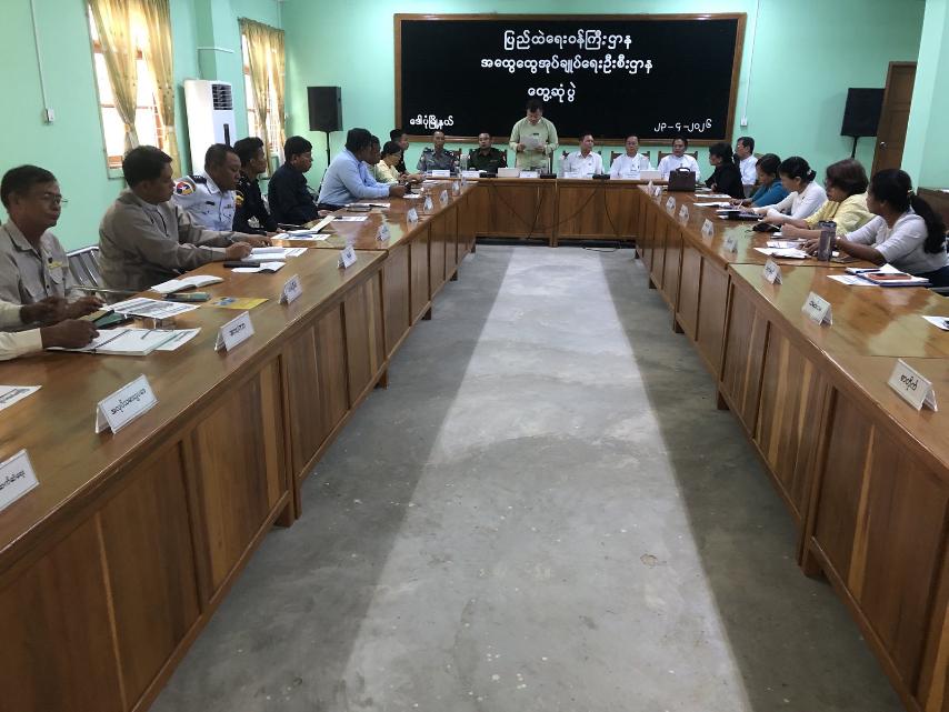 ဦးစွာ လွှတ်တော်ကိုယ်စားလှယ်များဖြစ်ကြသည့် ပြည်သူ့လွှတ်တော်ကိုယ်စားလှယ် ဦးဝင်းကျော်၊ အမျိုးသားလွှတ်တော်ကိုယ်စားလှယ် (PR) ဦးတင့်ဇော်၊ အမျိုးသားလွှတ်တော်ကိုယ်စားလှယ် (FPTP) ဦးဝင်းလှိုင်၊ တိုင်းဒေသကြီးလွှတ်တော်ကိုယ်စားလှယ် ဦးသက်နိုင်တို့က မိတ်ဆက်စကားပြောကြားခဲ့ကြပြီးနောက် မြို့နယ်စီမံခန့်ခွဲရေးနှင့်အုပ်ချုပ်ရေးကော်မတီဥက္ကဋ္ဌ ဦးထူးထက်က အဖွင့်အမှာစကားပြောကြားခဲ့ပါသည်။ ဆက်လက်၍ မြို့နယ်စီမံခန့်ခွဲရေးနှင့်အုပ်ချုပ်ရေးကော်မတီအဖွဲ့ဝင်များ၊ မြို့နယ်အတွင်းရှိ ဌာနဆိုင်ရာအသီးသီးမှ တာဝန်ရှိသူများနှင့် ရပ်ကွက်အုပ်ချုပ်ရေးမှူးများက မိတ်ဆက်စကားပြောကြားခဲ့ကြပြီး မိမိတို့ဌာနအလိုက် လုပ်ငန်းဆောင်ရွက်နေမှုများ၊ ရပ်ကွက်များအလိုက် အခြေခံလိုအပ်ချက်များနှင့်ပတ်သက်၍ အသီးသီးတင်ပြဆွေးနွေးခဲ့ကြပါသည်။