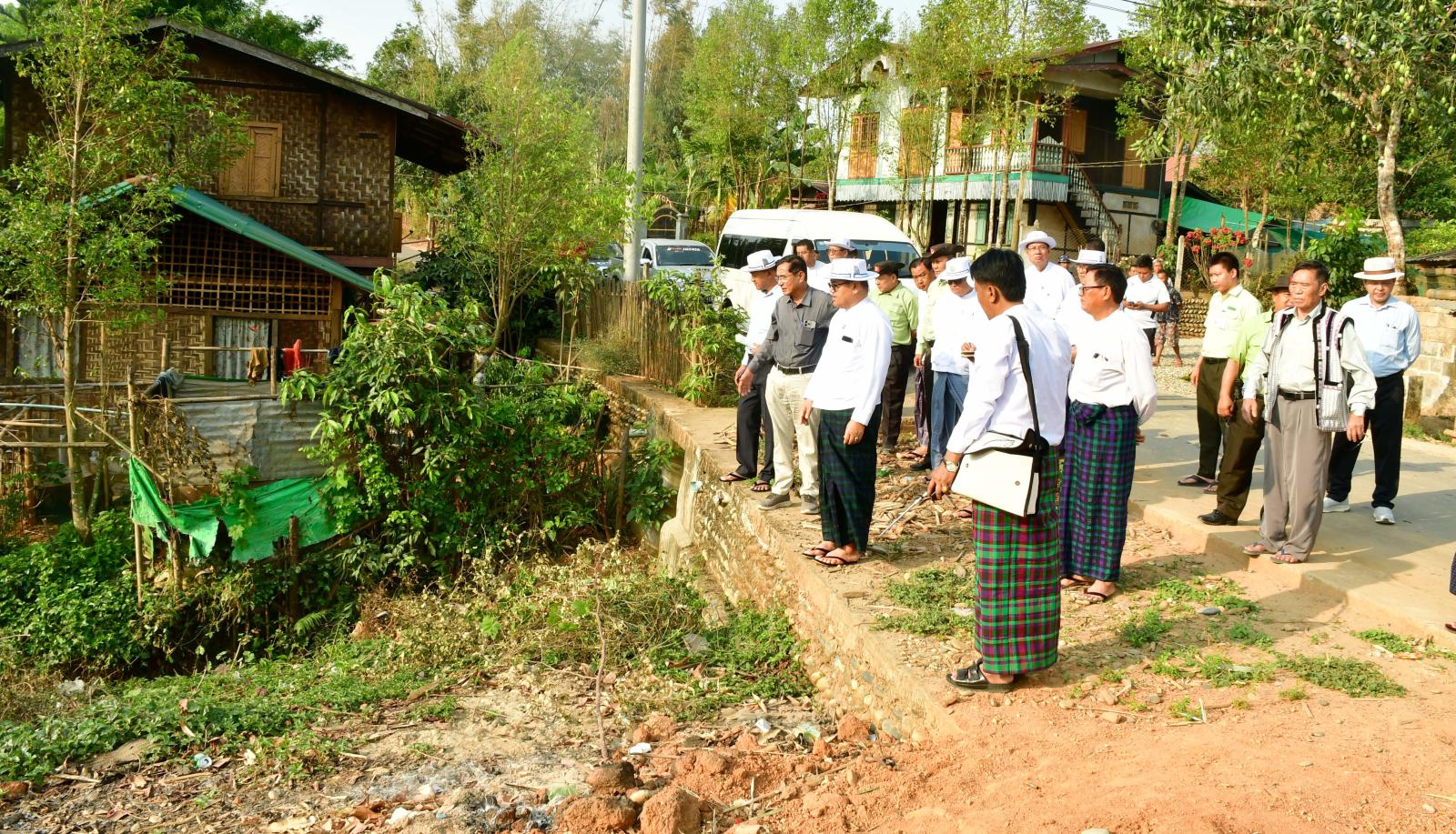 ကချင်ပြည်နယ်ဝန်ကြီးချုပ် ဦးခက်ထိန်နန်သည် ပြည်နယ်ဝန်ကြီးများ၊ ပြည်နယ်အဆင့် ဌာနဆိုင်ရာတာဝန်ရှိသူများနှင့်အတူ ယမန်နေ့နံနက်ပိုင်းက မြစ်ကြီးနားမြို့ ရွှေစက်ရပ်ကွက်သို့ သွားရောက်ခဲ့ကြပြီး ရပ်ကွက်တွင်းလမ်းများ အဆင့်မြင့်တင်ထားရှိမှုနှင့် လမ်းဘေးဝဲ/ယာ ရေနှုတ်မြောင်းများ စနစ်တကျဆောင်ရွက်နိုင်ရေး ကွင်းဆင်းစစ်ဆေးခဲ့ကြသည်။