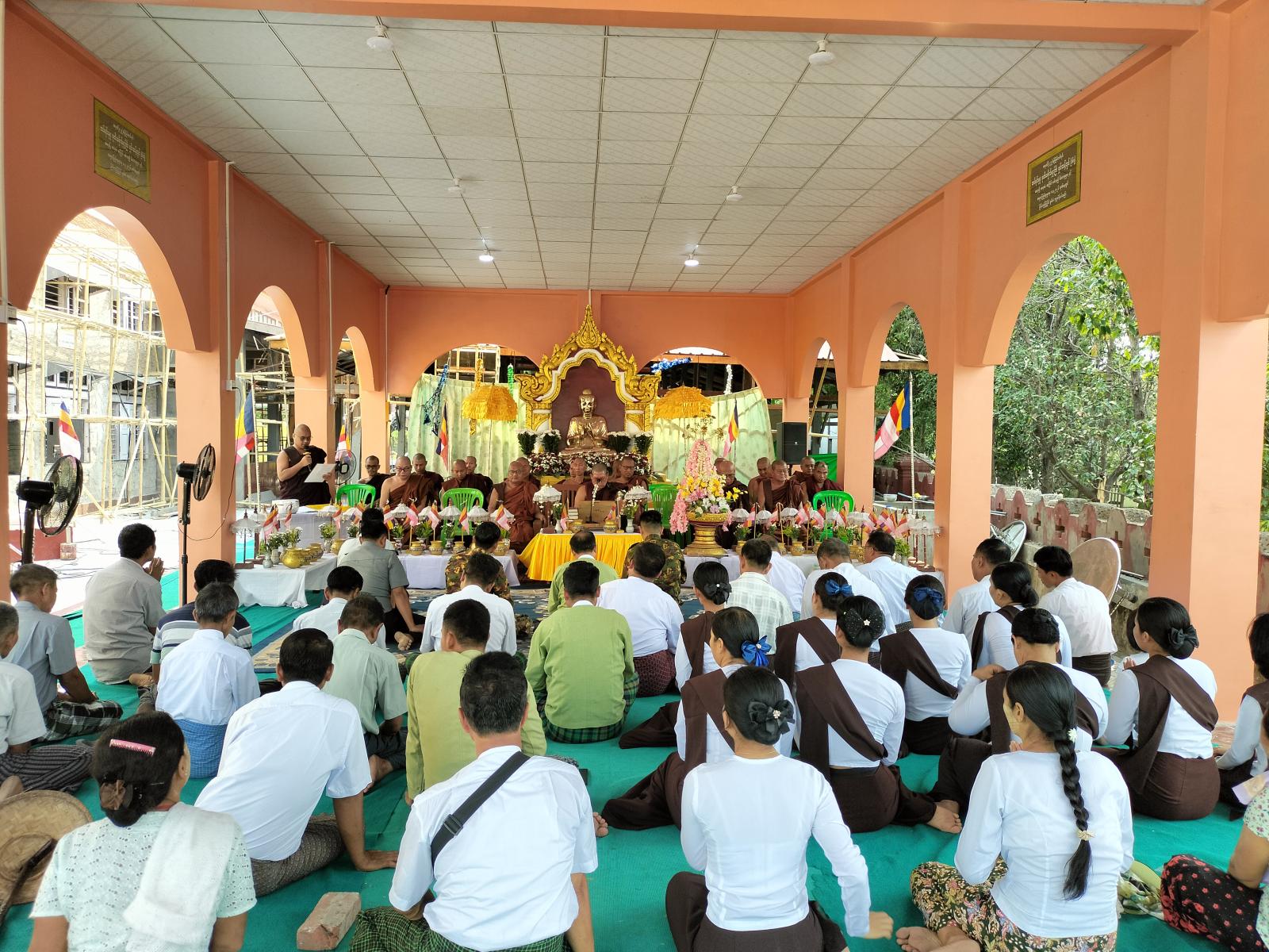 ဆက်လက်၍ ညောင်ဝန်းသုံးထပ်ကျောင်းတိုက်ဆရာတော်မှ ဘုရားပင့်ဂါထာဖြင့်လည်းကောင်း၊ ရွှေလှေဂန္ဓာရုံပရဟိတကျောင်းတိုက်ဆရာတော်မှ ဘုရားရှိခိုးဂါထာတော်ဖြင့်လည်းကောင်း ရွတ်ဖတ်ပူဇော်ခဲ့ကြပြီး တောင်ကိုင်းအောင်သပြေသာကျောင်းတိုက် ဆရာတော်မှ အဘိဓမ္မာတရားတော်နာကြားရန်အတွက် နတ်ဗြဟ္မာများအား ပင့်ဖိတ်ခဲ့ကာ စဉ့်ကူးမြို့နယ် သံဃနာယကအဖွဲ့ဥက္ကဋ္ဌ ရွာတော်လေးချမ့်မြေ့သာစည်ကျောင်းတိုက်ဆရာတော် ဦးဝရသာမိထံမှ ဧည့်ပရိသတ်များက ငါးပါးသီလခံယူဆောက်တည်ကြပြီး သြဝါဒတရားတော်များနာယူခဲ့ကြသည်။ ထို့နောက် စံကျောင်းဆရာတော်မှ အဘိဓမ္မာဒေသနာတော် ရွတ်ဖတ်ပူဇော်နိုင်ရန် တိုက်တွန်းနှိုးဆော်လွှာဂါထာကိုရွတ်ဖတ်ပူဇော်၍ ဆရာတော် သံဃာတော်များ၊ လူပရိသတ်များက ပဌာန်းပစ္စယုဒ္ဒေသကို (၃)ကြိမ်တိုင်တိုင် သံပြိုင်ရွတ်ဆိုခဲ့ကြကာ အလှည့်ကျဆရာတော်မှစ၍ ပဋ္ဌာန်းဒေသနာတော်ကို စတင်ရွတ်ဖတ်ပူဇော်ခဲ့သည်။