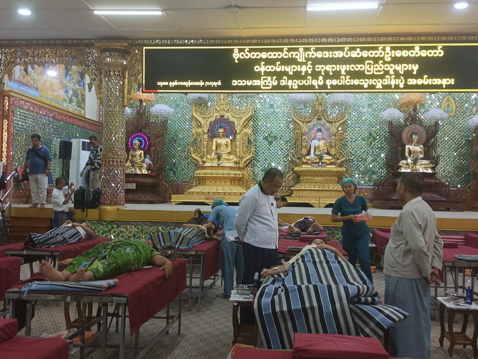 ရန်ကုန်တိုင်းဒေသကြီး၊ ဗိုလ်တထောင်ခရိုင်၊ ဗိုလ်တထောင်မြို့နယ် ဗိုလ်တထောင်ကျိုက်ဒေးအပ်ဆံတော်ဦးစေတီတော် ဆိပ်ကမ်းလုပ်သားပေါင်းစုံဓမ္မာရုံတွင် ပြုလုပ်သော စေတီတော်ဝန်ထမ်းများနှင့် ဘုရားဖူးလာပြည်သူများမှ “ဒဿမ” အကြိမ်မြောက် ဒါနဥပပါရမီ စုပေါင်းသွေးလှူဒါန်းပွဲကို ယနေ့နံနက် (၉)နာရီအချိန်တွင် ကျင်းပပြုလုပ်ခဲ့သည်။