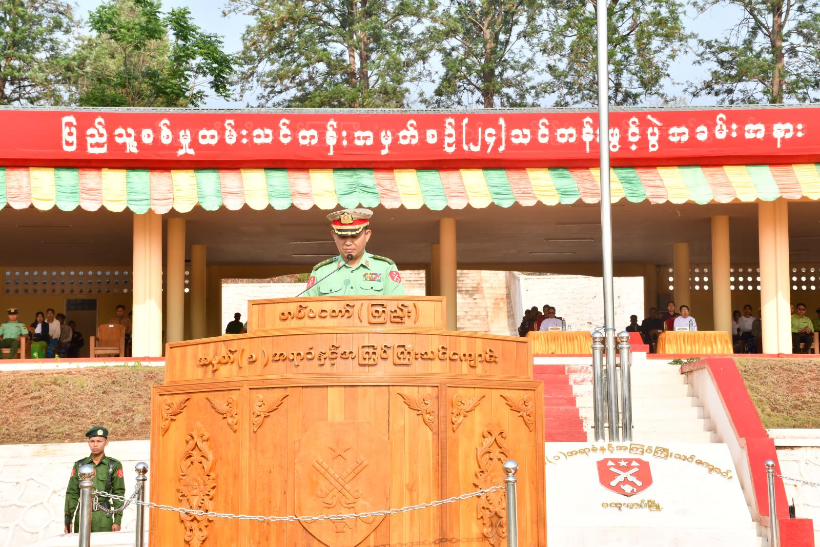 သင်တန်းဖွင့်ပွဲအခမ်းအနားတွင် တပ်မတော်(ကြည်း) ဗိုလ်သင်တန်းကျောင်း ကျောင်းအုပ်ကြီးက ပြည်သူ့ စစ်မှုထမ်းသင်တန်းသား(၉၀)ဦးအားသင်တန်း ဖွင့်မိန့်ခွန်းပြောကြားခဲ့သည်။