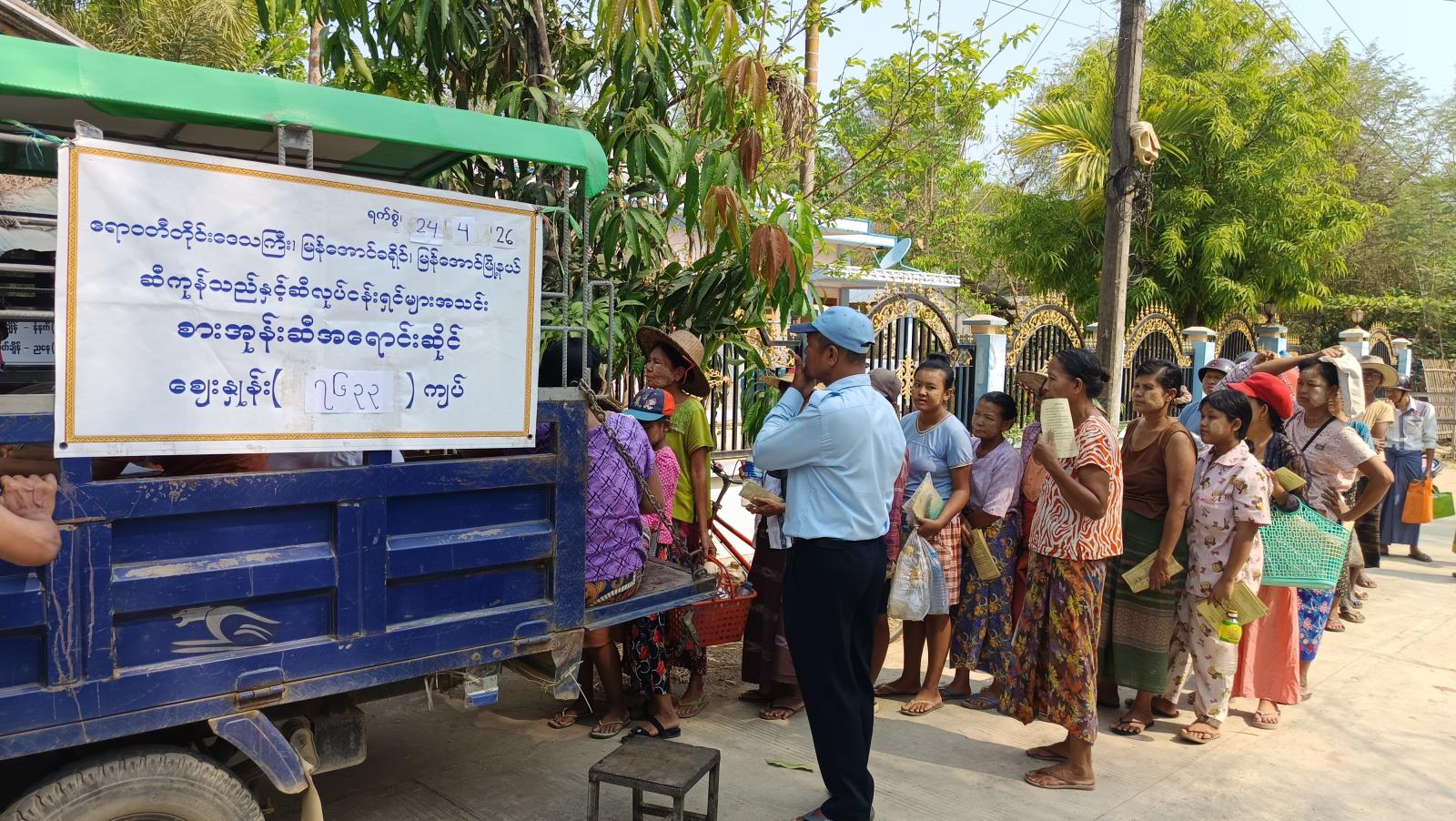 ဧရာဝတီတိုင်းဒေသကြီး၊ မြန်အောင်ခရိုင်၊ မြန်အောင်မြို့နယ် မြို့မတဲကြီးကုန်းကျေးရွာအုပ်စုဖက်တန်းရွာ၊ ရွာသစ်ကုန်းရွာ၊ ဘာဝနာရွာ၊ ရှမ်းစုကျေးရွာများရှိ အိမ်ခြေ ၂၅၀ ခန့်ကို ဧပြီလ ၂၄ ရက်နေ့နံနက်က စားအုန်းဆီဝယ်ယူခွင့်စာအုပ်ဖြင့် သတ်မှတ်ရည်ညွှန်းဈေးအတိုင်း ကျေးရွာအရောက် ကွင်းဆင်းရောင်းချပေးခဲ့သည်။
