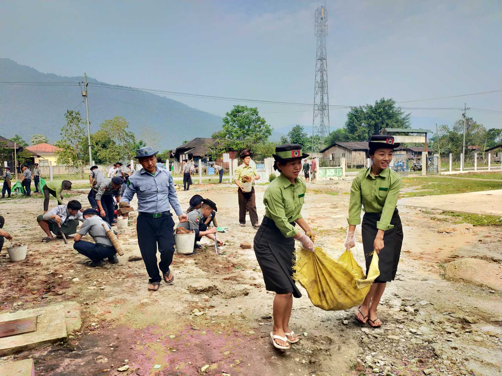 ထိုသို့စုပေါင်းသန့်ရှင်းရေးဆောင်ရွက်ရာတွင် မြို့နယ်အုပ်ချုပ်ရေးမှူးဦးနမ်ရဲမင်၊နှင့် ဌာနဆိုင်ရာဝန်ထမ်းများ၊ မြန်မာနိုင်ငံရဲတပ်ဖွဲ့ဝင်များ၊ မီးသတ်တပ်ဖွဲ့ဝင်များ၊ မြို့နယ်ဆရာဝန်ကြီးနှင့် သူနာပြုဆရာမများ/ ဆေးရုံဝန်ထမ်းများစသဖြင့် စုစုပေါင်းအင်အား (၈၆) ဦးတို့ ပါဝင်ပူးပေါင်းဆောင်ရွက်ခဲ့ကြကြောင်း သိရှိရသည်။