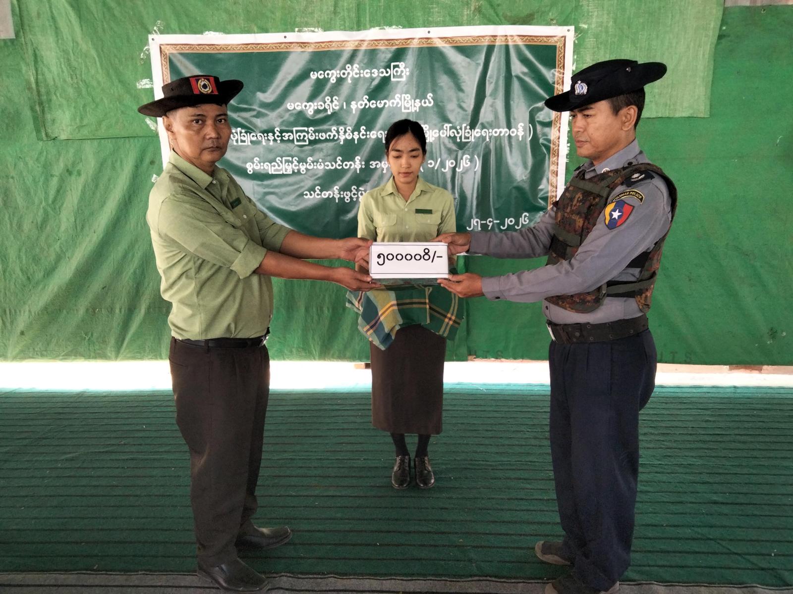 ရှေးဦးစွာမြို့နယ် အထွေထွေအုပ်ချုပ်ရေးဦးစီးဌာန မြို့နယ်အုပ်ချုပ်ရေးမှူး ဦးဝင်းနိုင်ဦးက အဖွင့်အမှာစကားပြောကြားပြီး မြို့နယ်ရဲတပ်ဖွဲ့မှူး ရဲမှူးဇော်မြင့်သူက ပြည်သူ့လုံခြုံရေးနှင့်အကြမ်းဖက်နှိမ်နင်းရေးအဖွဲ့ (မြို့ပေါ်လုံခြုံရေးတာဝန်) စွမ်းရည်မြှင့်မွမ်းမံသင်တန်း ဖွင့်လှစ်ရခြင်း ရည်ရွယ်ချက်များ အားရှင်းလင်းပြောကြားခဲ့သည်။ ထို့နောက် မြို့နယ်အုပ်ချုပ်ရေးမှူးက ပြည်သူ့လုံခြုံရေးနှင့်အကြမ်းဖက်နှိမ်နင်းရေးအဖွဲ့ (မြို့ပေါ်လုံခြုံရေးတာဝန်) စွမ်းရည်မြှင့်မွမ်းမံသင်တန်းအတွက် မကွေးတိုင်းဒေသကြီးအစိုးရအဖွဲ့မှ ထောက်ပံ့ပေးသော ငွေသား(၅)သိန်းကျပ်အား မြို့နယ်ပြည်သူ့လုံခြုံရေးနှင့် အကြမ်းဖက်နှိမ်နင်းရေးကြီးကြပ်ကွပ်ကဲမှုအဖွဲ့ဥက္ကဋ္ဌမှ သင်တန်းမှူးထံ ပေးအပ်ခဲ့သည်။ အဆိုပါသင်တန်းအား သင်တန်းသား(၅၀)ဦးဖြင့် ဖွင့်လှစ်ခဲ့ပြီး အမျိုးသားလွှတ်တော်ကိုယ်စားလှယ် ဦးဇော်လတ်မိုး၊ မြို့နယ်အုပ်ချုပ်ရေးမှူး၊ မြို့နယ်ရဲတပ်ဖွဲ့မှူးနှင့် တပ်ဖွဲ့ဝင်များ၊ မြို့နယ်လ.ဝ.ကဦးစီးမှူးနှင့် မြို့နယ်မီးသတ်ဦးစီးဌာန ဦးစီးမှူးတို့ တက်ရောက်ခဲ့ကြကြောင်း သိရသည်။