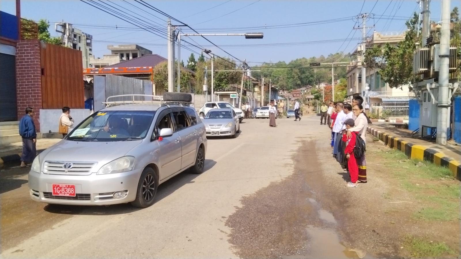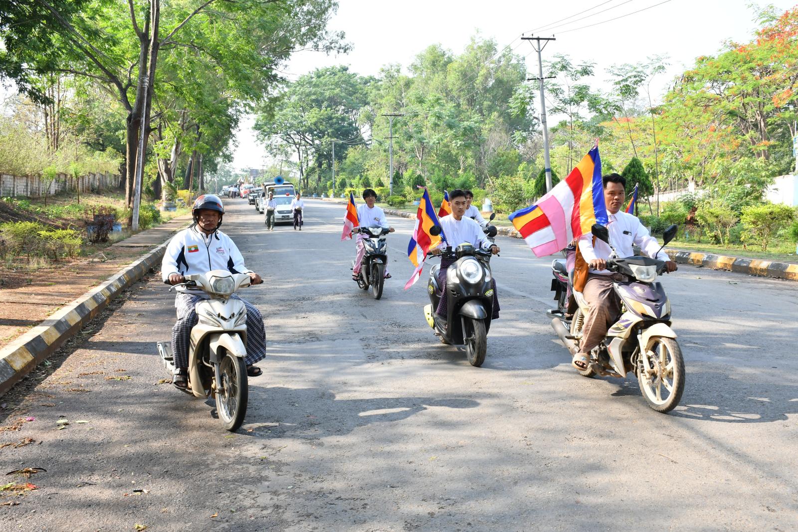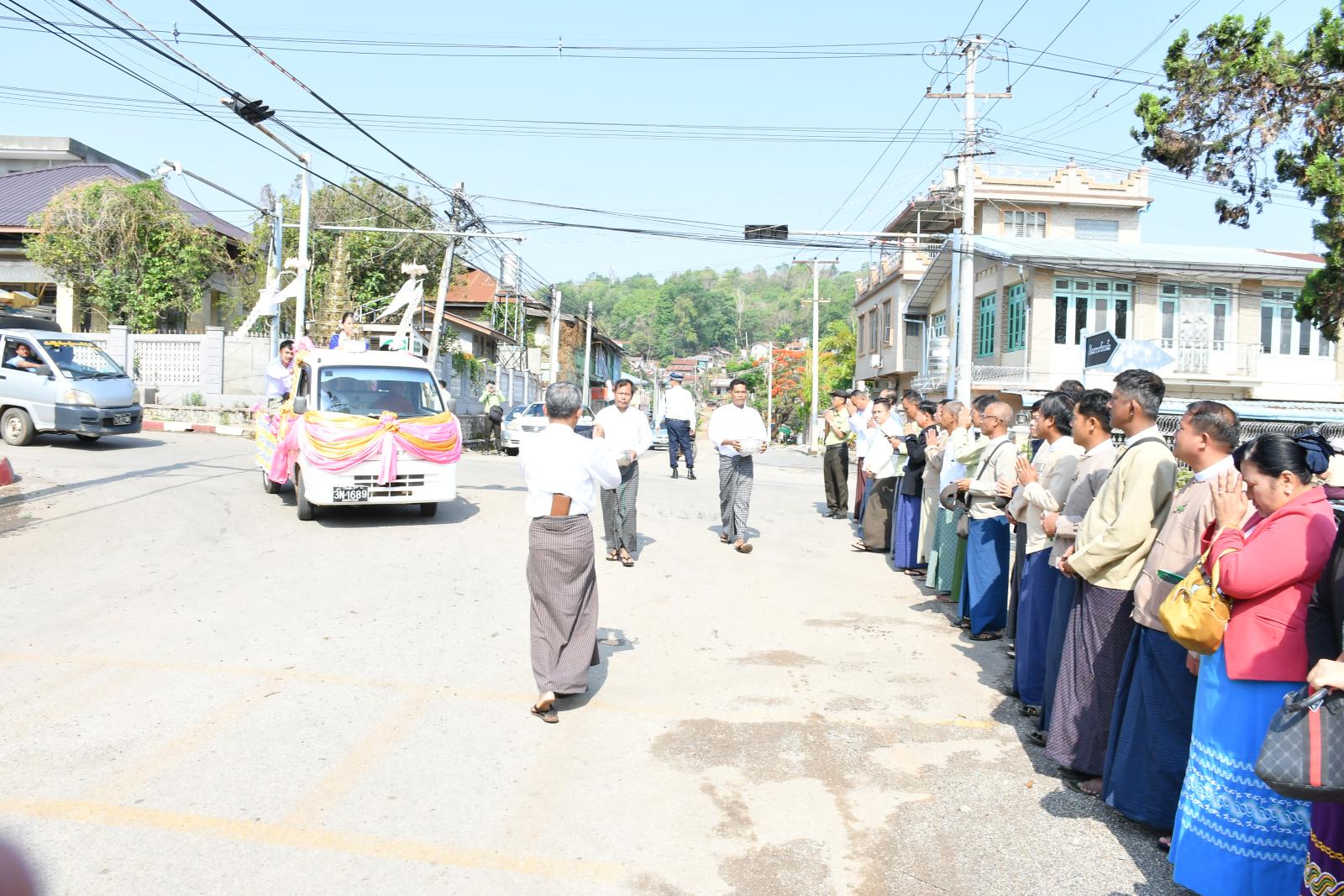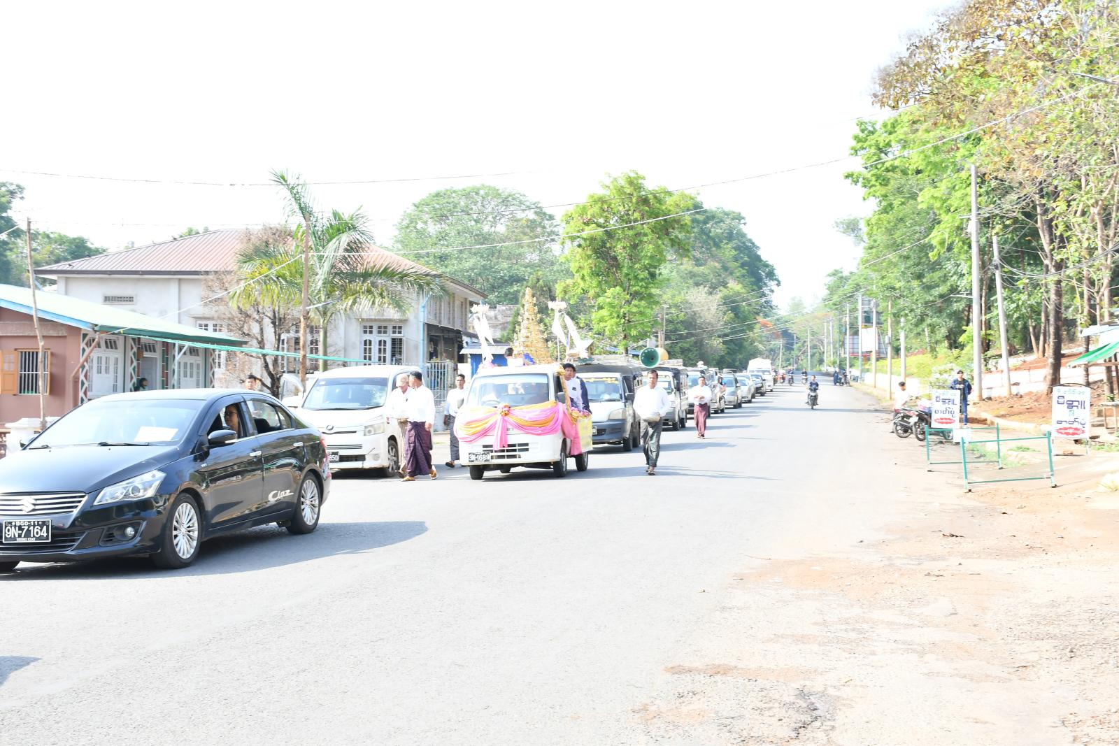 အဆိုပါ ရွှေထီးတော်သစ်ကို နံနက် ၈ နာရီတွင် ကျောက်မဲမြို့ ပိတောက်လမ်းနှင့် ပင်လုံလမ်းဆုံ၌ ခရိုင်စီမံခန့်ခွဲရေးနှင့်အုပ်ချုပ်ရေးကော်မတီဥက္ကဋ္ဌ ဦးကျော်ဆွေဝင်းနှင့် အဖွဲ့ဝင်များ၊ ခရိုင်နှင့် မြို့နယ်အဆင့်ဌာနဆိုင်ရာတာဝန်ရှိသူများက ကြိုဆိုပင့်ဆောင်ခဲ့ကြပြီး ထို့နောက်မြို့တွင်းသို့ လှည့်လည်၍ အပူဇော်ခံခဲ့ကြသည်။