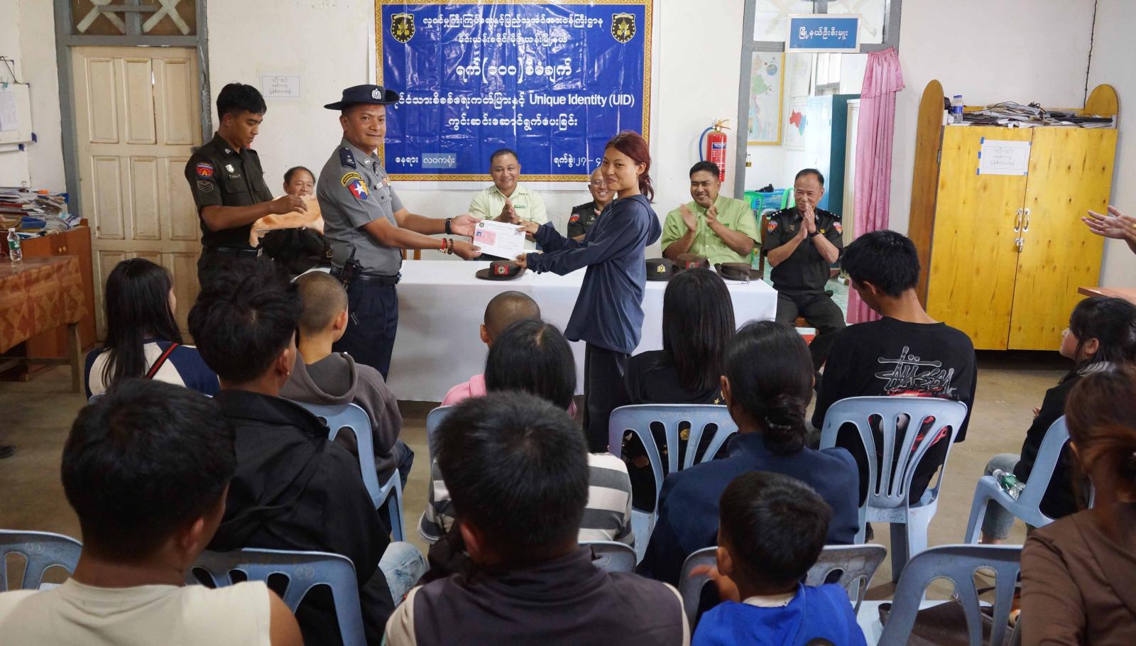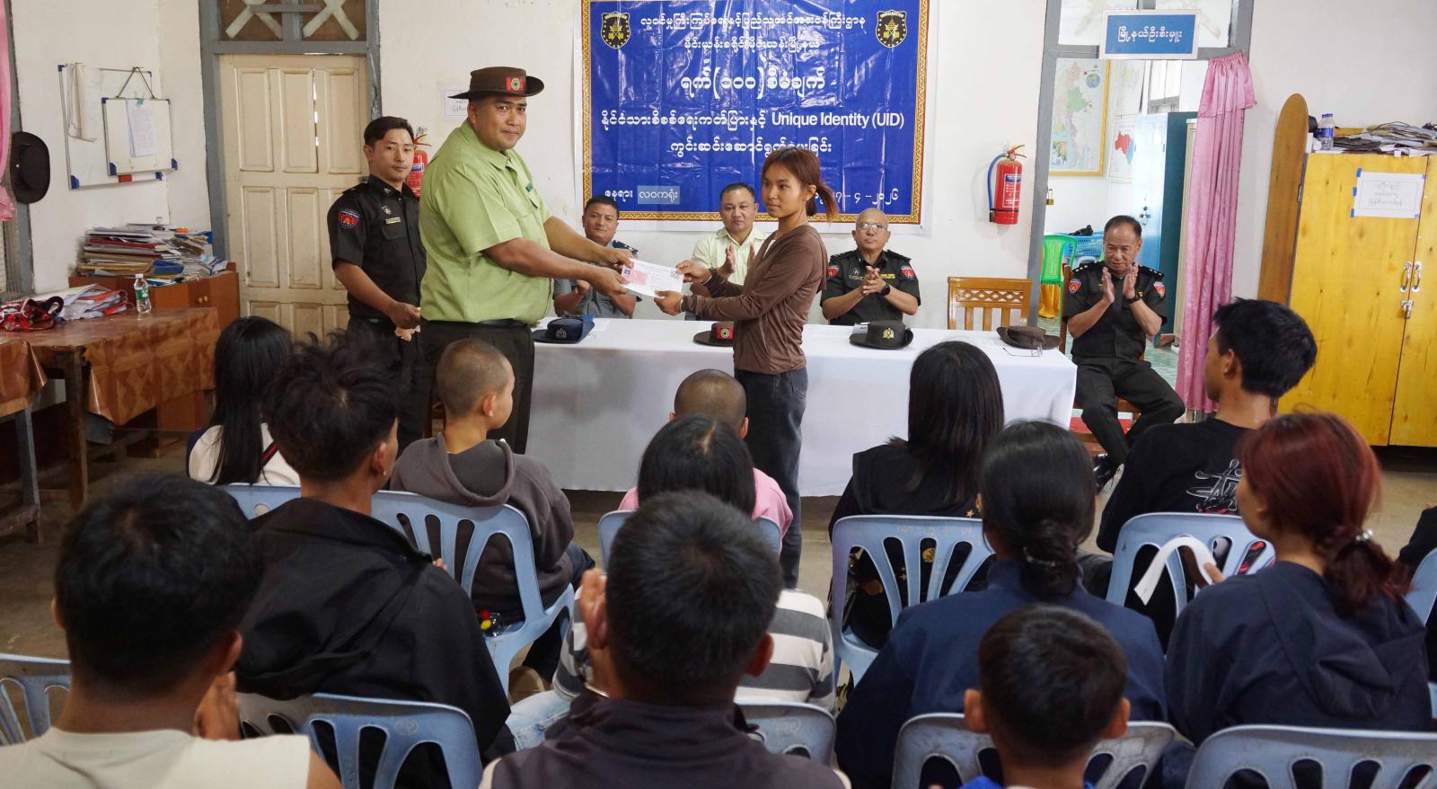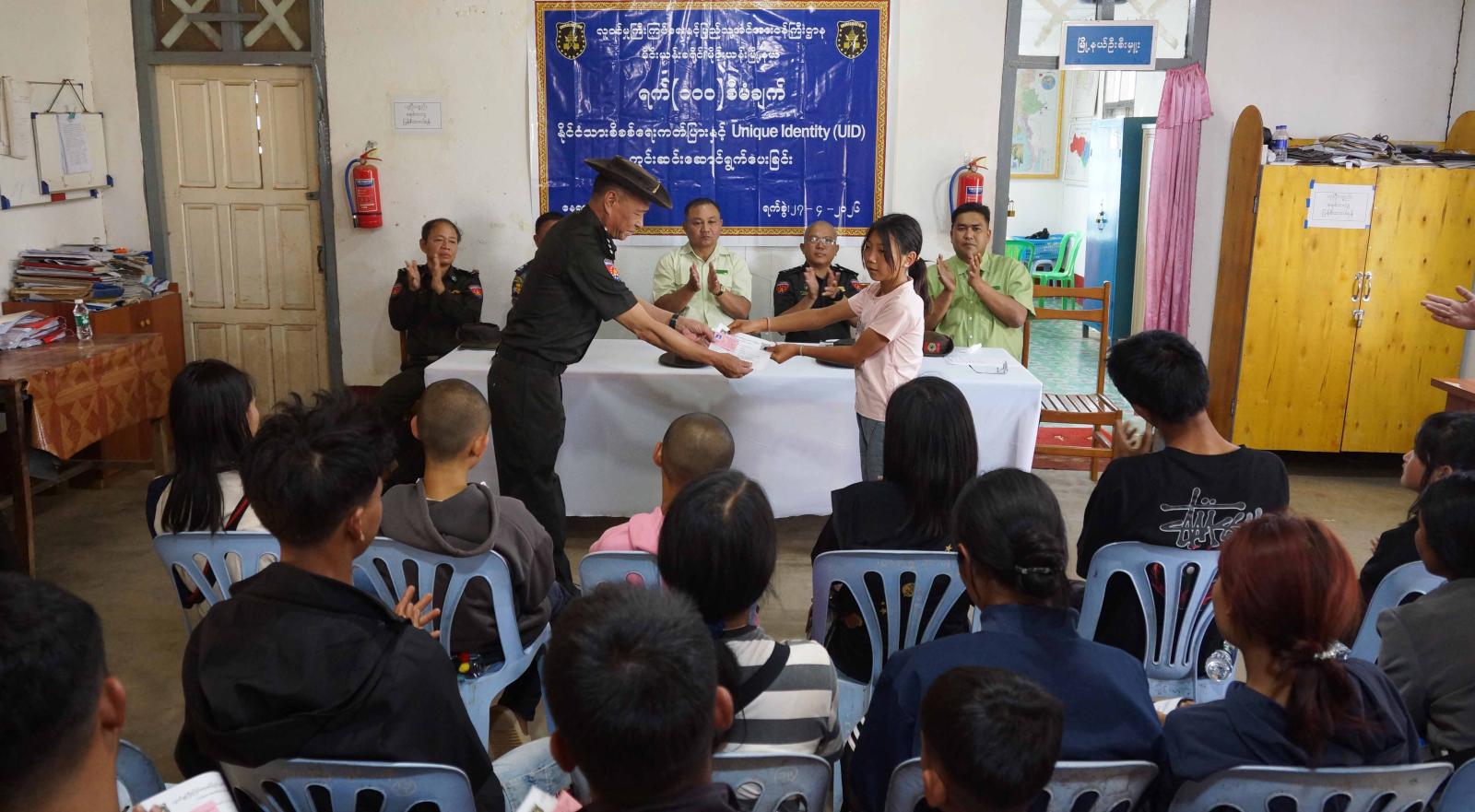 ရှမ်းပြည်နယ်(အရှေ့ပိုင်း)၊ မိုင်းယန်းခရိုင်၊ မိုင်းယန်းမြို့နယ် လူဝင်မှုကြီးကြပ်ရေးနှင့် ပြည်သူ့အင်အားဝန်ကြီးဌာနမှ သွားလာရန်ခက်ခဲသော တောင်ပေါ်ဒေသ ယန်းကောင်ကျေးရွာ အုပ်စုအတွင်းရှိ ကျေးရွာများသို့ ပြည်သူ့အစိုးရသစ်၏ ရက်(၁၀၀)စီမံချက်ဖြင့် ကွင်းဆင်းဆောင်ရွက်ခဲ့သည့် နိုင်ငံသားစိစစ်ရေးကတ်ပြားများနှင့် UID ကတ်များ ပြုလုပ်ပေးအပ်ခြင်း အခမ်းအနားကို ယမန်နေ့ မွန်းလွဲ ၃ နာရီက ဝန်းလိတ်ရပ်ကွက်အတွင်းရှိ ခရိုင်လူဝင်မှုကြီးကြပ်ရေးနှင့်ပြည်သူ့အင်အားဝန်ကြီးဌာနရုံး၌ ကျင်းပသည်။