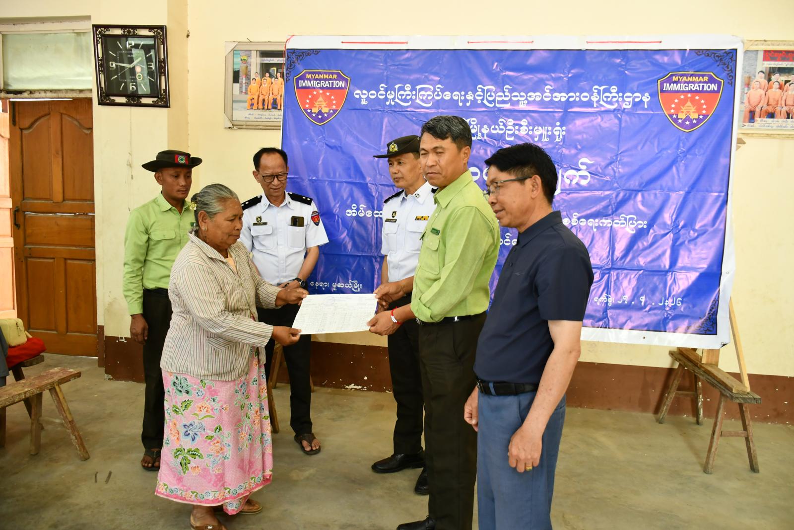 ရှမ်းပြည်နယ် (မြောက်ပိုင်း)၊ မူဆယ်မြို့တွင် အစိုးရသစ်ကာလ အများပြည်သူများ၏ အခြေခံလိုအပ်ချက်ကို ရှေးရှု၍ ရက်(၁၀၀)စီမံချက်ဖြင့် အိမ်ထောင်စု လူဦးရေစာရင်းနှင့် နိုင်ငံသားစိစစ်ရေးကတ်ပြားများ ဆောင်ရွက်ပေးခြင်းကို မူဆယ်မြို့၊ ဟိုမွန်ရပ်ကွက်၊ မောက်ကိုဆွဲ့ခန်းမ၌ ယမန်နေ့တွင် ကွင်းဆင်းဆောင်ရွက်ပေးခဲ့ကြောင်း သိရသည်။