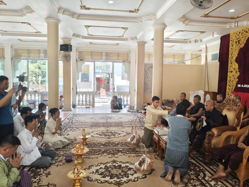 အဆိုပါအခမ်းအနားကို ဓမ္မာရာမတောရကျောင်းတိုက် ဦးစီးပဓာန နာယကဆရာတော် ဘဒ္ဒန္တရက္ခိတာလင်္ကာရအမှူးပြု သံဃာတော်များ၊ မြို့နယ်အုပ်ချုပ်ရေးမှူး ဦးအောင်မိုးလွင်၊ မြို့နယ်ရဲတပ်ဖွဲ့မှူးရဲမှူး မိုးမြင့်၊ မြန်မာနိုင်ငံ သတင်းမီဒီယာကောင်စီမှ ဒု-ဥက္ကဋ္ဌ ဦးခင်မောင်ကျော်ဒင်၊ ဦးစိန်တိုး (တွဲဘက် အတွင်းရေးမှူး-၁) နှင့် အဖွဲ့ဝင်များ၊ ဌာနဆိုင်ရာများနှင့် ဖိတ်ကြားထားသူများ တက်ရောက်ခဲ့ကြပြီး၊ ဘဒ္ဒန္တရက္ခိတာလင်္ကာရထံ မှငါးပါးသီလခံယူဆောက်တည်ခဲ့ပြီး လှူဖွယ်ပစ္စည်း အစုစုတို့အား ဆက်ကပ်လှူဒါန်းကာ လှူဒါန်းမှုအစုစုအတွက် ရေစက်သွန်းချ အမျှပေးဝေခဲ့ပြီး သံဃာတော် ၁၀၈ ပါးအား နေ့ဆွမ်းဆက်ကပ်ခဲ့ကြသည်။