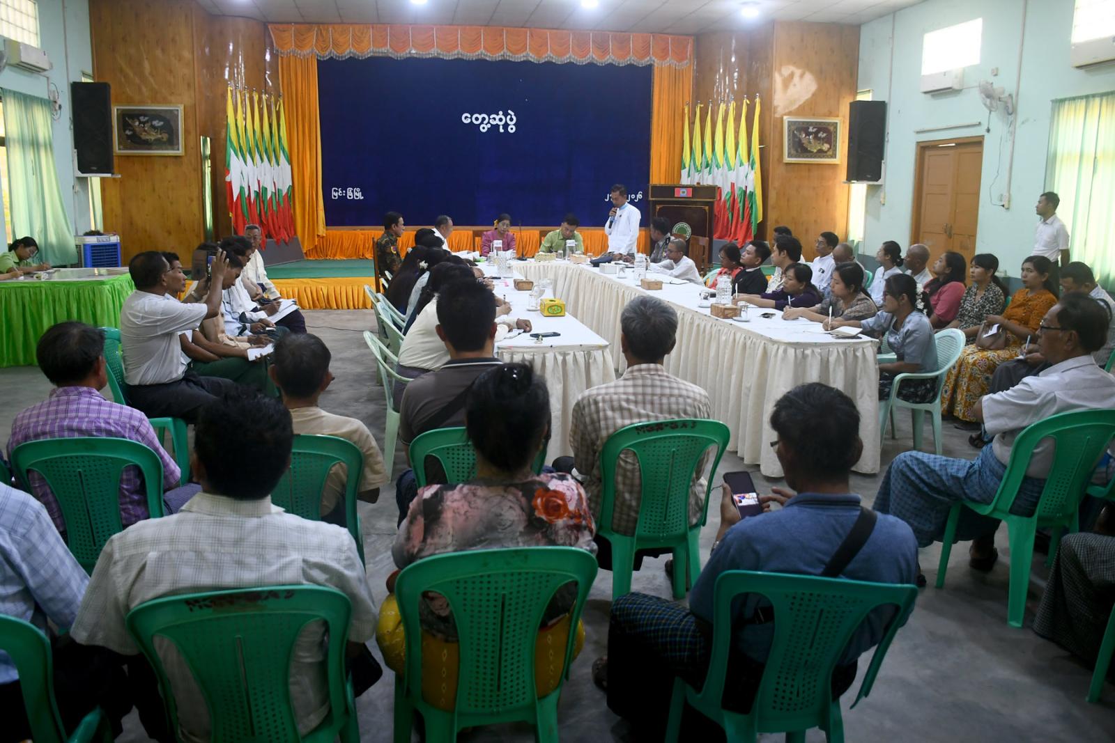 မန္တလေးတိုင်းဒေသကြီး မြင်းခြံမြို့၌ လွှတ်တော်ကိုယ်စားလှယ်များနှင့် မြို့နယ်အဆင့်ဌာန ဆိုင်ရာများ တွေ့ဆုံပွဲ၍ လွှတ်တော်ဆိုင်ရာအတွေ့အကြုံများ ရှင်းလင်းခြင်းကို ဧပြီ ၂၇ ရက် နံနက် ၉ နာရီက မြို့နယ်အထွေထွေအုပ်ချုပ် ရေးဦးစီးဌာန အစည်းအဝေးခန်းမတွင် ပြုလုပ်ခဲ့သည်။