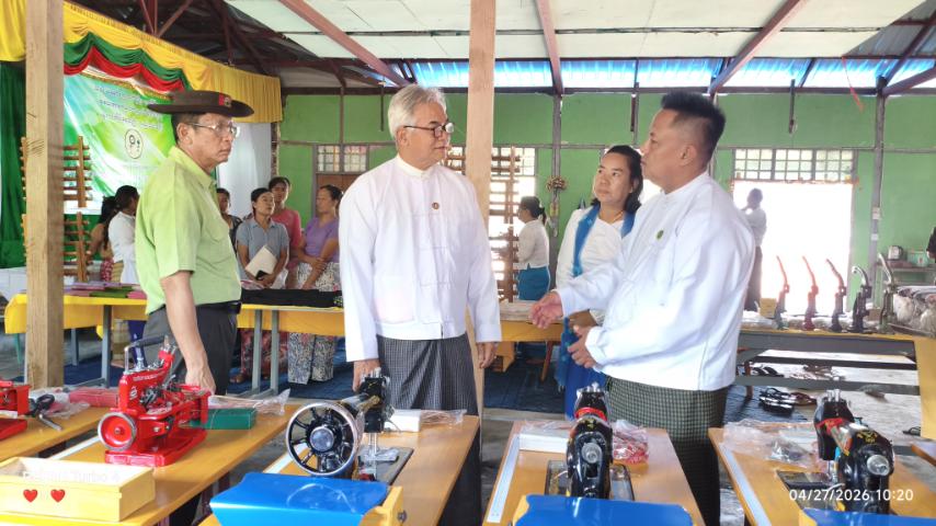 မန္တလေးတိုင်းဒေသကြီး၊ ရမည်းသင်းခရိုင် အသေးစားစက်မှုလက်မှု လုပ်ငန်းဦးစီးဌာနက အသေးစားကုန်ထုတ်လုပ်ငန်းများဖန်တီးပေးနိုင်ရေးနှင့် ကျေးလက်နေမိသားစုဝင်ငွေတိုးရေး စီမံကိန်းလုပ်ငန်းများထဲမှ အမျိုးသမီးများအတွက် ဝင်ငွေတိုးတက်ဆောင်ရွက်မည့် လုပ်ငန်း စီမံကိန်း ရက်(၁၀၀) စီမံချက်ဖြင့် ဖွင့်လှစ်သည့် အခြေခံ/မွမ်းမံ စက်ချုပ် နည်းပညာသင်တန်း ဖွင့်ပွဲအခမ်းအနားကို ဧပြီ ၂၇ ရက် နံနက် (၁၀) နာရီက စံပြသိမ်ကုန်းကျေးရွာ၊ အုပ်ချုပ်ရေးမှူးရုံး၌ ကျင်းပသည်။