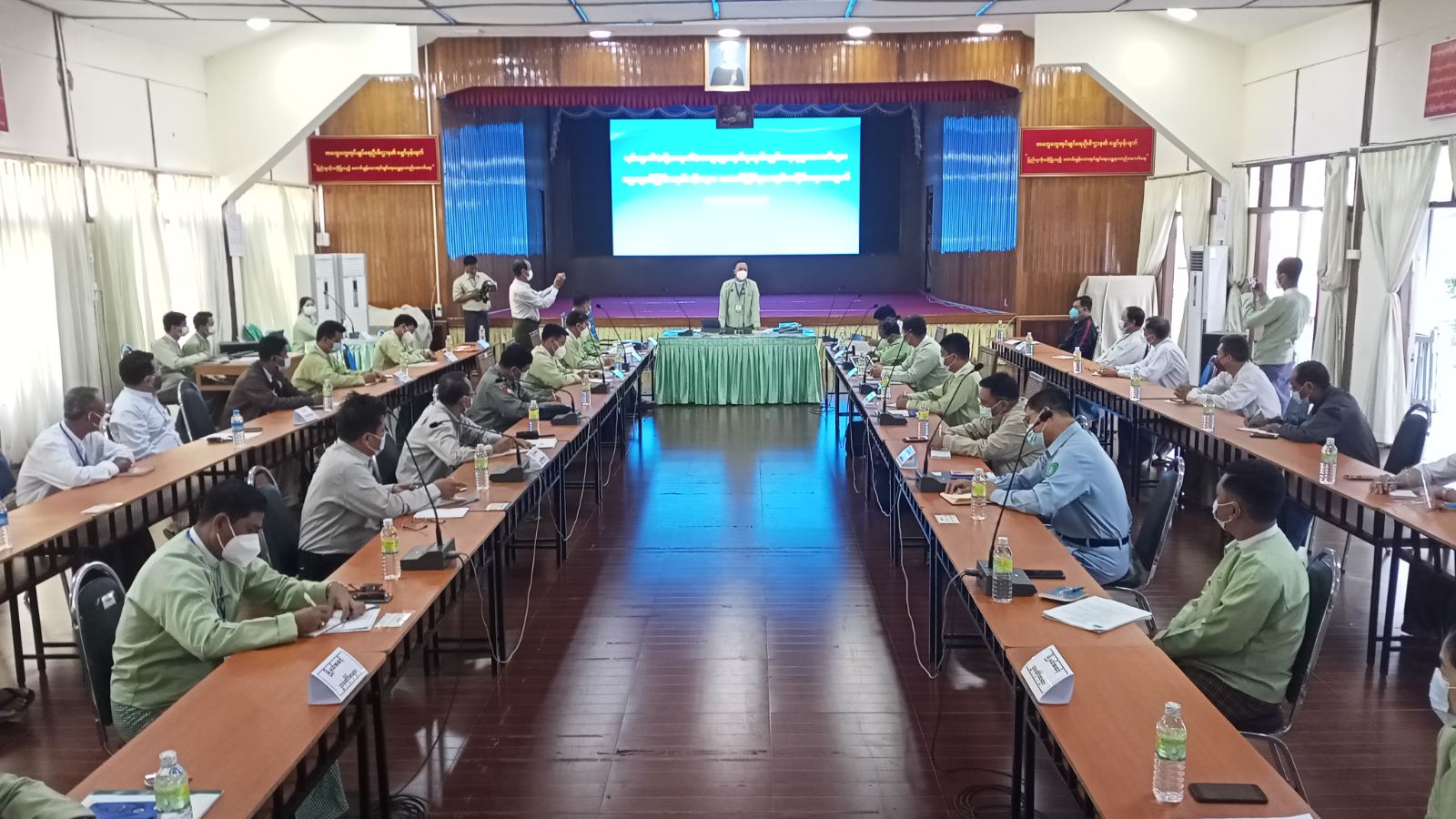ဧရာ၀တီတိုင်းဒေသကြီး ပုသိမ်မြို့တွင် ပုသိမ်ခရိုင်အတွင်းရှိ မြို့နယ်များတွင် ရပ်ကွက်/ကျေးရွာ အုပ်ချုပ်ရေးမှူးအသစ်များ ရွေးချယ်ခြင်းလုပ်ငန်းများ အောင်မြင်စွာ ကျင်းပနိုင်ရေးအတွက် တွေ့ဆုံဆွေးနွေးပွဲကို ယနေ့နံနက်ပိုင်းက ဧရာရွှေဝါခန်းမ၌ ကျင်းပသည်။