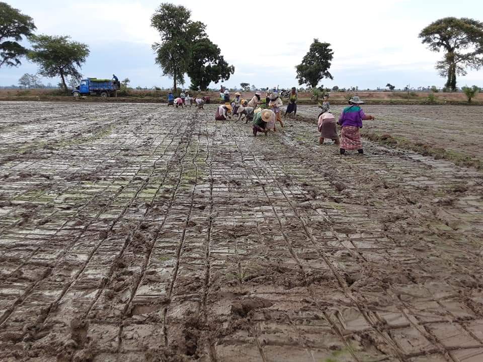 စစ်ကိုင်းတိုင်းဒေသကြီး၊ ရွှေဘိုခရိုင်၊ ခင်ဦးမြို့နယ်တွင် ၂၀၁၉-၂၀၂၀ ခုနှစ် မိုးစပါးလျာထားဧက (၁၀၀၈၈၄) လျာထားရာ မိုးစပါးစိုက်ပျိုးဧက ပြည့်မီရေး အတွက် မြို့နယ်စိုက်ပျိုးရေးဝန်ထမ်းများမှ ရေလိုအပ်ချက်နည်းသော စပါးစိုက်နည်းစနစ်များကို တောင်သူများနှင့်အတူ နယ်မြေအလိုက် ကွင်းဆင်း ဆောင်ရွက်လျက်ရှိသည်။