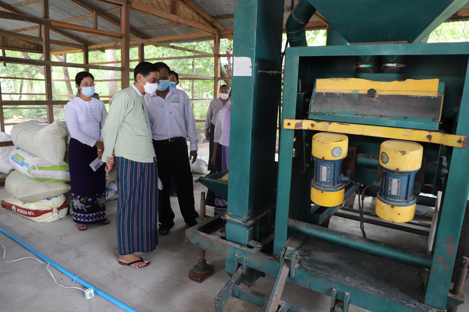ယင်းနောက် တိုင်းဒေသကြီးစီမံအုပ်ချုပ်ရေးကောင်စီ ဥက္ကဋ္ဌ ဦးမောင်မောင်လင်း၊ ဗိုလ်မှူးကြီး ဝင်းတင်စိုး၊ ဦးတင်သန်းဝင်းနှင့် တာဝန်ရှိသူများနှင့်အတူ စပါးမျိုးသန့်စင်စက်ရုံနှင့် ဝါမျိုးသန့် ကြိတ်စက် ရုံအား ဖဲကြိုးဖြတ်ဖွင့်လှစ်ပေးကြပြီး စပါးမျိုးသန့်စင်စက်နှင့် ဝါမျိုးသန့်စက် လက်တွေ့လည်ပတ်နေမှုအား ကြည့်ရှု့စစ်ဆေးခဲ့ကြသည်။