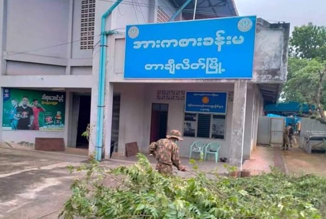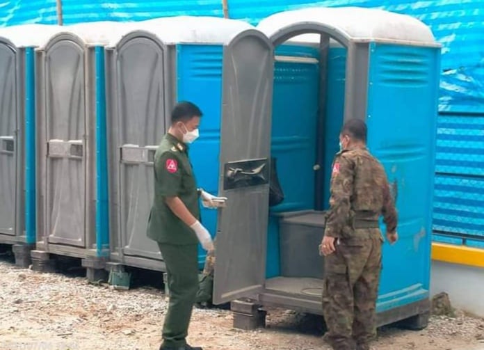 ရှမ်းပြည်နယ် (အရှေ့ပိုင်း) တာချီလိတ်မြို့တွင် ကိုဗစ်-၁၉ ရောဂါ ပိုးတွေ့လူနာများ ဆေးဝါးကုသမှု အဆင်ပြေစေရန်အတွက် တပ်မတော်သားများမှ ကုသဆောင်များ ကြိုတင်ပြင်ဆင်မှုကို ယမန်နေ့က ခရိုင်အားကစားရုံတွင် ပြုလုပ်ဆောင်ရွက်ခဲ့ကြသည်။