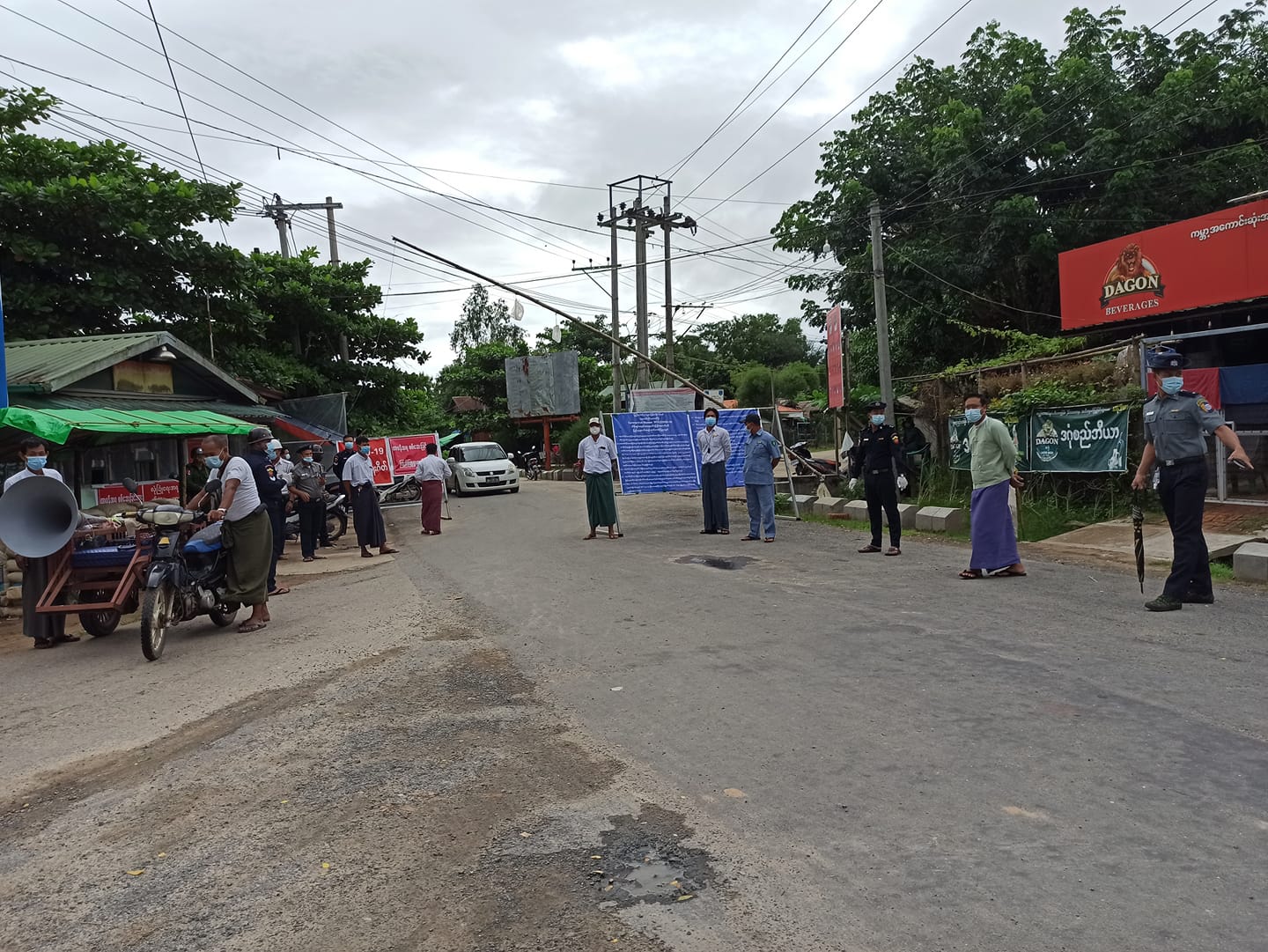 မြို့နယ် ကိုဗစ်-၁၉ထိန်းချုပ်ရေးနှင့် အရေးပေါ်တုံ့ပြန်ရေး ကော်မတီဝင်များက မြို့ပေါ်ရပ်ကွက်များနှင့် ဈေး၊ စက်လှေဆိပ်၊ သင်္ဘောဆိပ်များသို့ လှည့်လည် စစ်ဆေးခဲ့ပြီး နေအိမ်ပြင်ပသို့ထွက်ခွာ သွားလာ နေကြသည့် ပြည်သူများအနေဖြင့် ကျန်းမာရေးနှင့် အားကစားဝန်ကြီးဌာနမှ ထုတ်ပြန်ထားသည့် အမိန့် ကြေငြာချက်နှင့် လမ်းညွှန်မှာကြားချက်များအား တိကျစွာလိုက်နာရန်နှင့် ပြင်ပသို့ သွားလာရာ၌ ပါးစပ်နှင့် နှာခေါင်းစည်း (mask) မတပ်ဆင်ထားခြင်း၊ တပ်ဆင် ထားသော်လည်း မေးစေ့တွင်ချိတ်ဆွဲ ခြင်းများတွေ့ရှိပါက ပါးစပ်နှင့်နှာခေါင်းစည်း (mask)၃ခုပေး၍ ဒဏ်ကြေးငွေအဖြစ် ၃၀၀၀ ကျပ် ပြန်လည် ပေးဆောင်ရမည် ဖြစ်ကြောင်း မြို့နယ်ကိုဗစ်-၁၉ ထိန်းချုပ်ရေးနှင့် အရေးပေါ်တုံ့ပြန်ရေး ကော်မတီမှ အသံချဲ့စက်ဖြင့် ကြေငြာခြင်းများကိုလည်း ဆောင်ရွက်ခဲ့ကြောင်း သိရသည်။