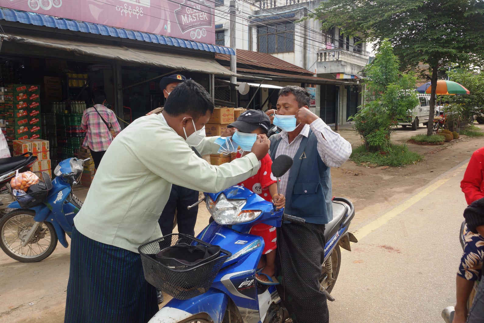 ထိုသို့ဆောင်ရွက်ရာတွင် နေ့အလိုက်တာဝန်ကျ ဌာနဆိုင်ရာအကြီးအကဲများမှ အဖွဲ့ခေါင်းဆောင်အဖြစ် ကြီးကြပ်ဆောင်ရွက်လျက်ရှိပြီး မြို့နယ်အထွေထွေအုပ်ချုပ်ရေးဦးစီးဌာန၊ ကျန်းမာရေးဦးစီးဌာန၊ ယာဉ်ထိန်းရဲတပ်ဖွဲ့ဝင်များနှင့် ကြက်ခြေနီတပ်ဖွဲ့ဝင်တို့ ပူးပေါင်း၍ မြို့ဝင်/မြို့ထွက် ကျန်းမာရေးစစ်ဆေးရေး ဂိတ်တွင် ဖြတ်သန်းသွားလာကြသည့် ပြည်သူများအား အပြင်ထွက်ပါက နှာခေါင်းစည်းများကို စနစ်တကျတပ်ဆင်သွားလာကြရန် လက်ကိုမကြာခနဆေးကြောသန့်စင်ပေးရန်နှင့် ကျန်းမာရေးဦးစီးဌာနမှ ထုတ်ပြန်ထားသည့် လမ်းညွှန်ချက်များကို စနစ်တကျလိုက်နာဆောင်ရွက်ကြရန် စသည်တို့ကို အသိပညာပေး ပြောကြားပြီး ကျန်းမာရေးစစ်ဆေးရေးဂိတ်တွင် ကိုယ်အပူချိန်တိုင်းတာစစ်ဆေးပေးခြင်း၊ လက်သန့်ဆေးရည်ဖြင့် လက်ကိုစနစ်တကျဆေးကြောစေခြင်း၊ ရပ်ဝေးမှ လာရောက်သည့် ပြည်သူများအား စနစ်တကျမှတ်တမ်း ရယူခြင်းနှင့် နှာခေါင်းစည်းတပ်ဆင်လာခြင်းမရှိသောသူ များအား နှာခေါင်းစည်းများ အခမဲ့ဝေငှပေးခြင်းတို့ကို ဆောင်ရွက်ပေးလျက်ရှိသည်။