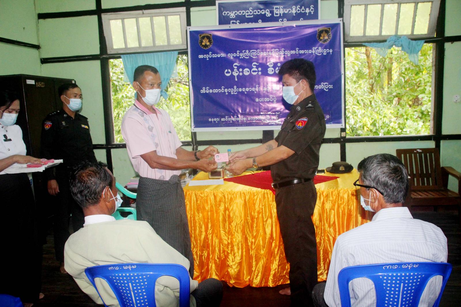 ၎င်းပေးအပ်ပွဲကို ကျန်းမာရေးနှင့်အားကစားဝန်ကြီးဌာနမှညွှန်ကြားထားသည့် ကိုဗစ်-၁၉ ရောဂါ ကြိုတင်ကာကွယ်ရေးလမ်းညွှန်ချက်များနှင့်အညီ ပေးအပ်ခဲ့ရာ နိုင်ငံသားစိစစ်ရေးကတ်ပြားပြုလုပ်သူ အသက်(၁၀)နှစ်ပြည့် (၂၀)ဦး၊ အသက်(၁၈)နှစ်ပြည့်(၄၆)ဦး၊ နိုင်ငံသားစိစစ်ရေးကတ်ပြားလဲလှယ်၊မိတ္တူ ပြုလုပ်သူ(၅၅)ဦး စုစုပေါင်း (၁၂၁)ဦးနှင့် အိမ်ထောင်စု လူဦးရေစာရင်း(၇၅)စု အားပေးအပ်ခဲ့ကြောင်း မြို့နယ်လူဝင်မှုကြီးကြပ်ရေးနှင့်ပြည်သူ့အင်အားဆိုင်ရာ ဦးစီးဌာနမှသိရသည်။