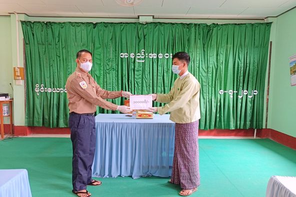 ရှမ်းပြည်နယ်(အရှေ့ပိုင်း)၊ တာချီလိတ်ခရိုင်၊ မိုင်းယောင်းမြို့နယ် အထွေထွေအုပ်ချုပ်ရေးဦးစီးဌာန အစည်းအဝေးခန်းမတွင် ကိုဗစ်-၁၉ ရောဂါ ကာကွယ်ရေးလုပ်ငန်းများကို ပြည်သူအတွက် ရှေ့တန်းတစ်နေရာမှ ပူးပေါင်းပါဝင်ဆောင်ရွက်နေသော ကြက်ခြေနီအသင်းအား မြို့နယ်အုပ်ချုပ်ရေးမှူး ဦးနေမြတ်သူ က အလှူငွေကျပ်တစ်သိန်း၊ ဦးစိုင်းထွန်း (Myanmar Founder ကုမ္ပဏီလီမိတက်) မှ အလှူငွေကျပ်တစ်သိန်း၊ အမှတ်(၈)ရပ်ကွက်မှ ဦးနွဲ့စိုင်းလုံနှင့် ဦးစိုးဝင်းတို့က အလှူငွေကျပ်ငါးသောင်းစီနှင့် ပြည်ခိုင်ဖြိုးပါတီမှ အလှူငွေကျပ်တစ်သိန်းကို ယနေ့တွင် ထောက်ပံ့လှူဒါန်းသည်။
