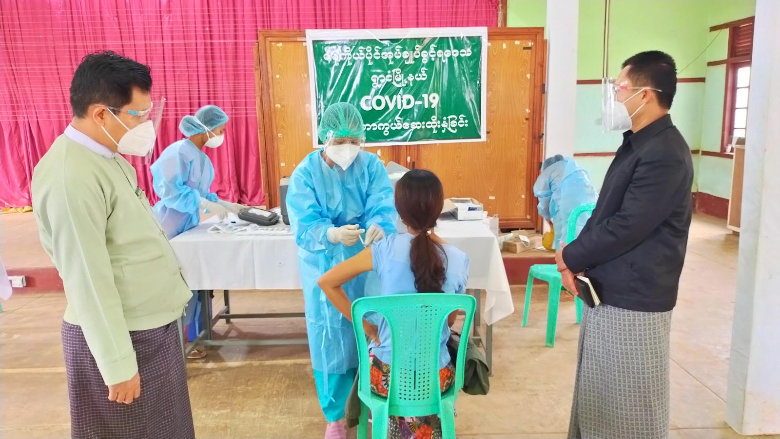 ရှမ်းပြည်နယ်(တောင်ပိုင်း)၊ ဓနုကိုယ်ပိုင်အုပ်ချုပ်ခွင့်ရဒေသ၊ ရွာငံမြို့နယ်အတွင်းရှိဌာနဆိုင်ရာ ဝန်ထမ်းများအား ကိုဗစ်− ၁၉ ရောဂါ ကာကွယ်ဆေးဒုတိယအကြိမ် ထိုးနှံပေးခြင်းကို ယနေ့နံနက်ပိုင်း က ရွာငံမြို့ ဗထူးခန်းမ၌ ဆောင်ရွက်ပေးခဲ့သည်။