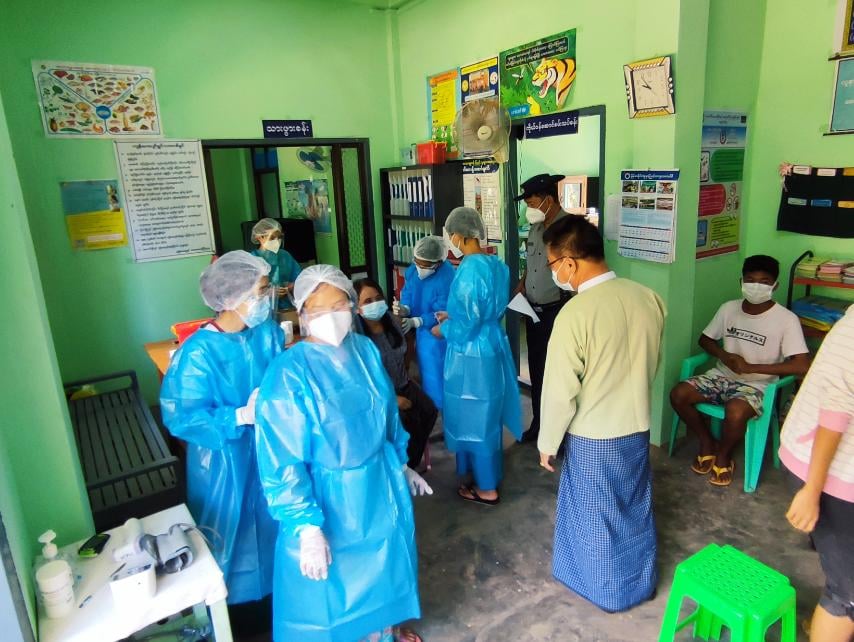 ထိုသို့ဆောင်ရွက်ရာတွင် ကျန်းမာရေးနှင့်အားကစားဝန်ကြီးဌာနမှ ချမှတ်ထားသော ကူးစက်မြန်ကိုဗစ်-၁၉ ရောဂါ ကာကွယ်ထိန်းချုပ်ရေး စည်းကမ်းချက်များနှင့် အညီ လာရောက်ထိုးနှံသူများအား လက်ဆေးခြင်း၊ ကိုယ်အပူချိန်တိုင်းတာပေးခြင်း နှင့်ကျန်းမာရေး စစ်ဆေးပေးခြင်းတို့ကို မြို့နယ်ကုသရေးနှင့် ကျန်းမာရေးဦးစီးဌာနမှူး ဒေါက်တာ မောင်မောင်သန်း နှင့်ဝန်ထမ်းများက ထိုးနှံရမည့်သူ စုစုပေါင်း(၈၄)ဦးတို့ကို ဒုတိယအကြိမ်အဖြစ် ထပ်မံထိုးပေးခဲ့ကြသည်။