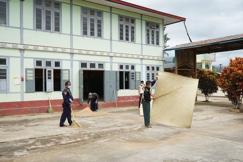 အသက်ရူလမ်းကြောင်းဆိုင်ရာ ကိုဗစ်-၁၉ ရောဂါ ကြိုတင်ကာကွယ်ရေးနှင့် ကူးစက်ပြန့်ပွားမှုကို ထိရောက်စွာထိန်းချုပ်ဆောင်ရွက်နိုင်ရေးအတွက် ရှမ်းပြည်နယ်တောင်ပိုင်းအတွင်းရှိ မြို့နယ်များ တွင် ကြိုတင်ကာကွယ်ရေးလုပ်ငန်းများ အရှိန်အဟုန်မြှင့် ဆောင်ရွက်လျက်ရှိရာ ဓနုကိုယ်ပိုင် အုပ်ချုပ်ခွင့်ရဒေသ၊ ပင်းတယမြို့နယ်ရှိ၊ မြို့နယ်ဓမ္မာရုံ၌ လူဦးရေ ၁၀၀ ဆံ့ Quarantine Center ထားရှိရန် ကြိုတင်ပြင်ဆင်မှုများအား ယနေ့နံနက် (၉ )နာရီက ဆောင်ရွက်ခဲ့ကြသည်။