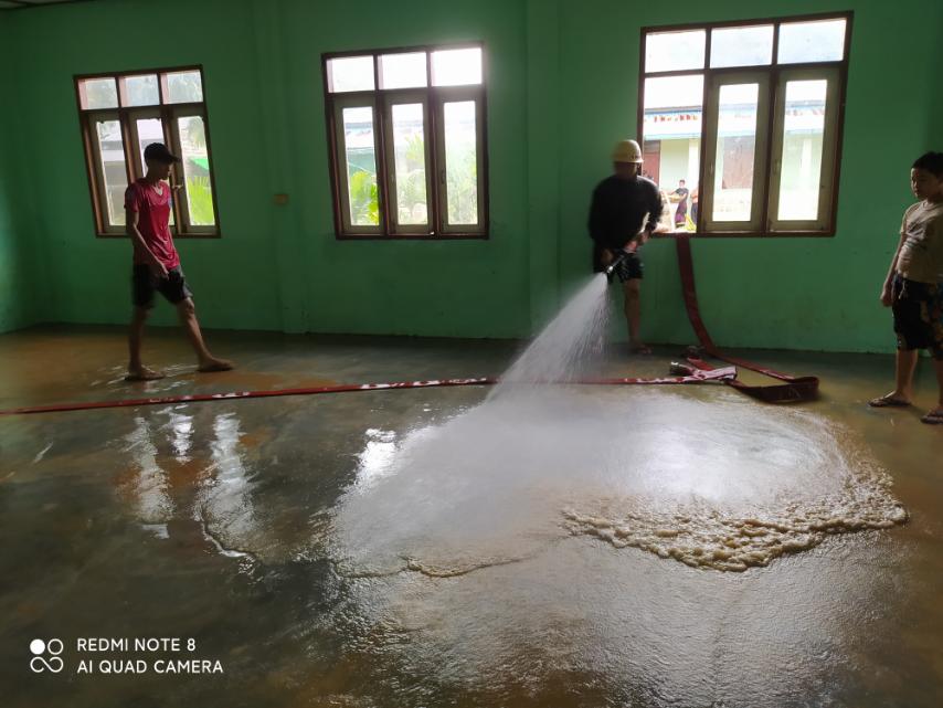 ထို့ကြောင့် ယနေ့ နံနက်ပိုင်းတွင် မီးသတ်တပ်ဖွဲ့မှ မြို့မီးသတ်ဦးစီးမှူး၊ ဦးဖြိုးမင်းထိုက်က ဦးဆောင်ပြီး မီးသတ်တပ်ဖွဲ့ဝင်(၂)ဦးနှင့် မြို့စည်ပင်သာယာရေးအဖွဲ့မှ မြို့ဦးစီးမှူး ဦးဇင်ကိုမြတ်နှင့် ဝန်ထမ်းများ၊ ပရဟိတအဖွဲ့များက ရေကြီးပြီးနောက် ဆေးရုံနှင့် ရုံးအဆောက်အအုံများအတွင်း တင်ကျန်ရစ်သော ရွှံ့နွံများ၊ အမှိုက်သရိုက်များအား ဆေးကြောခြင်း၊ ရေတွင်းများအား စုပ်ထုတ်ပေးခြင်း စသည့်ပြန်လည်ထူထောင်ရေးလုပ်ငန်းများကို ကူညီလုပ်ကိုင်ဆောင်ရွက်ပေးခဲ့ ကြောင်း သိရသည်။