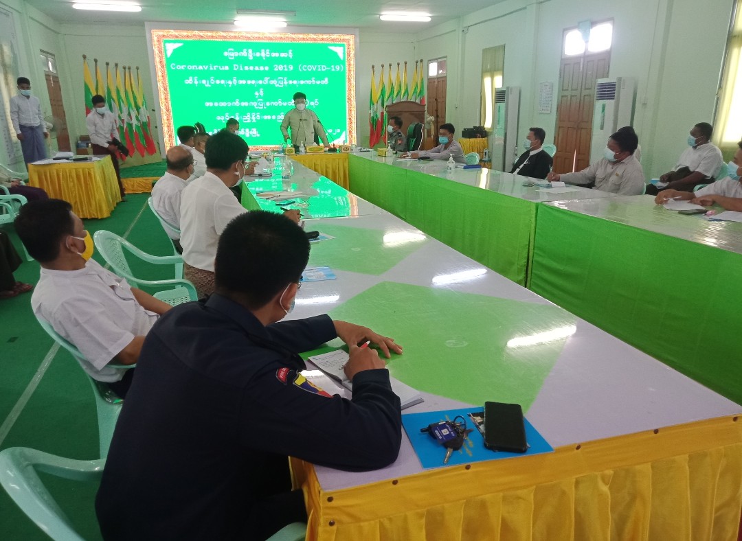 ထို့နောက် Community Based Facility Quarantine များစောင့်ကြည့်ထိန်းချုပ်ရေးနှင့် ကုသရေးလုပ်ငန်းကော်မတီအနေဖြင့် အားကစား ခန်းမ၊ စာသင်ကျောင်း၊ ဓမ္မာရုံ၊ ဟိုတယ် စသော နေရာများတွင် Community Based Facility Quarantine ထားရှိနိုင်စေရန် စီစဉ်ဆောင်ရွက် ထားရှိခြင်း၊ နေအိမ်အသွားအလာ ကန့်သတ် စောင့်ကြပ်ကြည့်ရှုခြင်း၊ ကျန်းမာရေးနှင့်အားကစား ဝန်ကြီးဌာန၏ လမ်းညွှန်ချက်နှင့်အညီ ဆောင်ရွက်လျှက်ရှိပါကြောင်း၊ အသိပညာပေးရေးနှင့် သတင်း စုဆောင်းထုတ်ပြန်ရေး လုပ်ငန်းကော်မတီအနေဖြင့် အသွားအလာ ကန့်သတ်ခြင်း လုပ်ငန်း များဆောင်ရွက်မည့် နေရာအားလုံးတွင် လိုက်နာဆောင်ရွက်ရမည့် စည်းကမ်းချက်များကို ရပ် ကွက်/ကျေးရွာများတွင် ပိုစတာများကပ်၍ အသိပညာပေးခြင်း၊ အသံချဲ့စက်ဖြင့် လှည့်လည် ကြော်ငြာပေးခြင်း၊ လက်ကမ်းစာစောင်များဖြန့်ဝေပေးခြင်း စသော လုပ်ငန်းများကို လုပ်ဆောင်သွား မည်ဖြစ်ကြောင်းနှင့်တက်ရောက်လာကြသော ကော်မတီအသီးသီးမှလည်းမိမိ၏လုပ်ငန်းတာဝန်များ ကို အကျယ်တဝင့်ဆွေးနွေးခဲ့ကြကြောင်းသိရသည်။