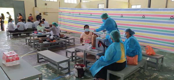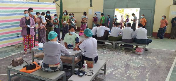 ရှမ်းပြည်နယ်(မြောက်ပိုင်း)၊ လားရှိုးခရိုင်၊ ကွမ်းလုံမြို့နယ်တွင် ဌာနဆိုင်ရာဝန်ထမ်းများ၊ ရပ်ကွက်/ ကျေးရွာ နေ ပြည်သူများအား ကိုဗစ်-၁၉ ရောဂါကာကွယ်ဆေး ဆက်လက်ထိုးနှံပေးခြင်းကို ယမန်နေ့ နံနက်က မြို့နယ်အားကစားရုံခန်းမ၌ စုရပ်ပြုလုပ်ကာ ဆေးထိုးနှံပေးခြင်းများ ဆောင်ရွက်ခဲ့ကြောင်း သိရသည်။