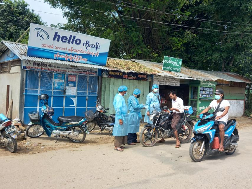 ထိုသို့ဆောင်ရွက်ရာ၌ ကိုဗစ်-၁၉ ရောဂါ ကာကွယ်ထိန်းချုပ်ကုသရေး မြို့နယ်အဆင့် ကော်မတီဝင်များ၊ စေတနာ့ဝန်ထမ်းများက နှာခေါင်းစည်း (Mask) မတပ်ဆင်သူများအား အပြင်ထွက်တိုင်း တပ်ဆင်သွားရန် အသိပညာပေးပြီး မတပ်ဆင်သူများအား အခုဝယ် အခုတပ်ဆင်စေခြင်းစနစ်ဖြင့် ဝယ်ယူစေခြင်း၊ စားသောက်ဆိုင်များအား ပါဆယ်စနစ်ဖြင့် ရောင်းချမှု အခြေအနေများအား စစ်ဆေးပြီး ကိုဗစ်-၁၉ရောဂါကူးစက်မှုမရှိစေရေးပူးပေါင်း သွားကြရန် အသိပညာပေးခဲ့ကြောင်း သိရသည်။