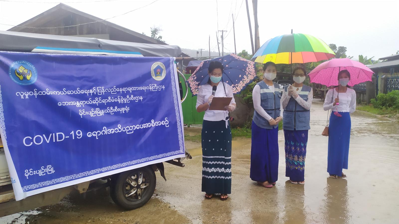 ယင်းသို့ ဆောင်ရွက်ရာတွင် မြို့နယ်ကိုဗစ်-၁၉ ရောဂါ ကာကွယ်ထိန်းချုပ်ကုသရေးကော်မတီ၊ ဌာနဆိုင်ရာများ၊ လူမှုရေးအသင်းအဖွဲ့များ ပူးပေါင်း၍ မြို့ပေါ်ရပ်ကွက်များတွင် ပြည်သူများအနေဖြင့် နေအိမ်ပြင်ပထွက်ခွာ ပါက နှာခေါင်းစည်း (Mask )များ စနစ်တကျတပ်ဆင်ရေး၊ ကျန်းမာရေးနှင့် အားကစားဝန်ကြီးဌာနမှ ကိုဗစ်-၁၉ ရောဂါ ကြိုတင်ကာကွယ်ရေး လမ်းညွှန်ချက်များနှင့်အညီ နေထိုင်စေရေးတို့ကို အသိပေးနှိုးဆောင်လျက်ရှိ သည်။